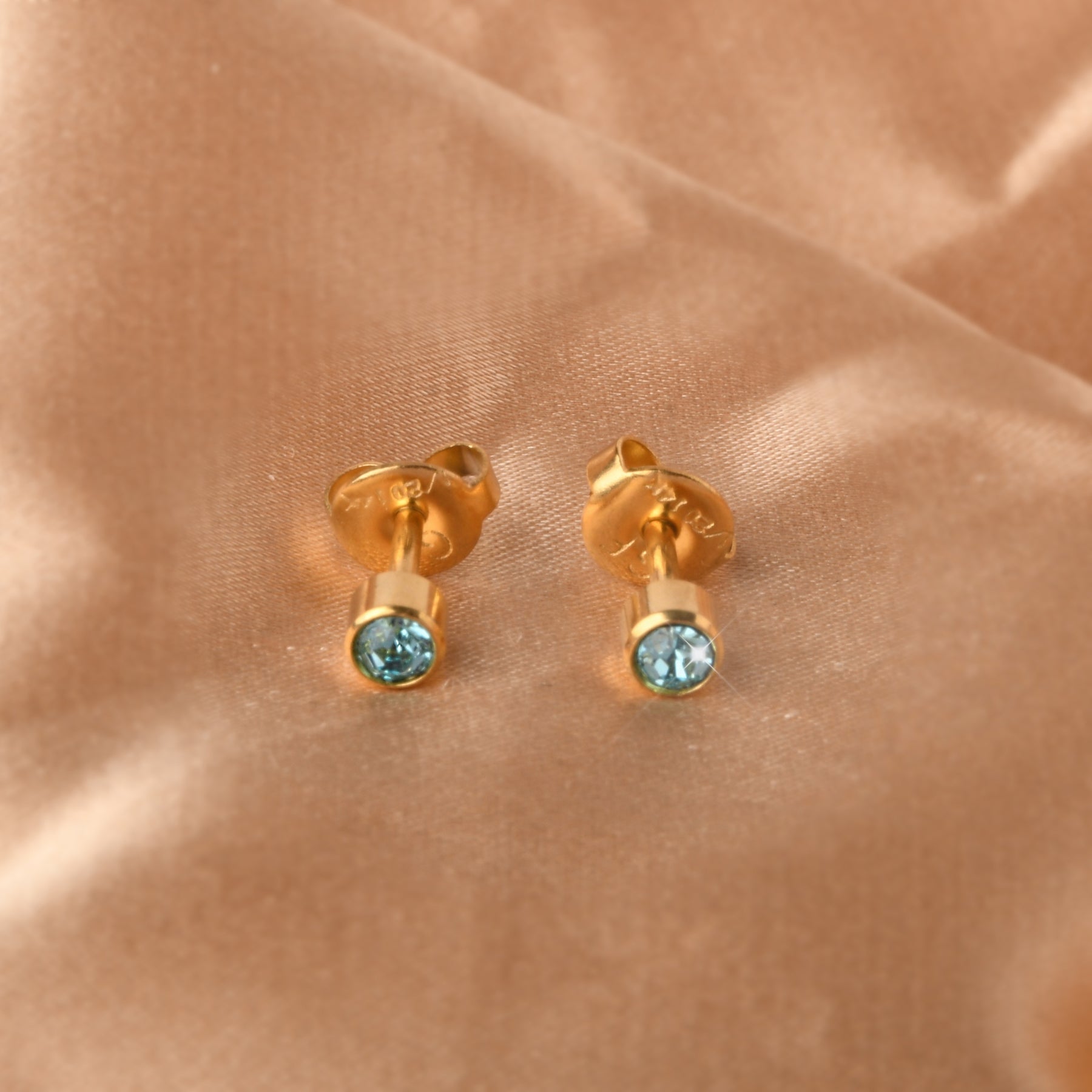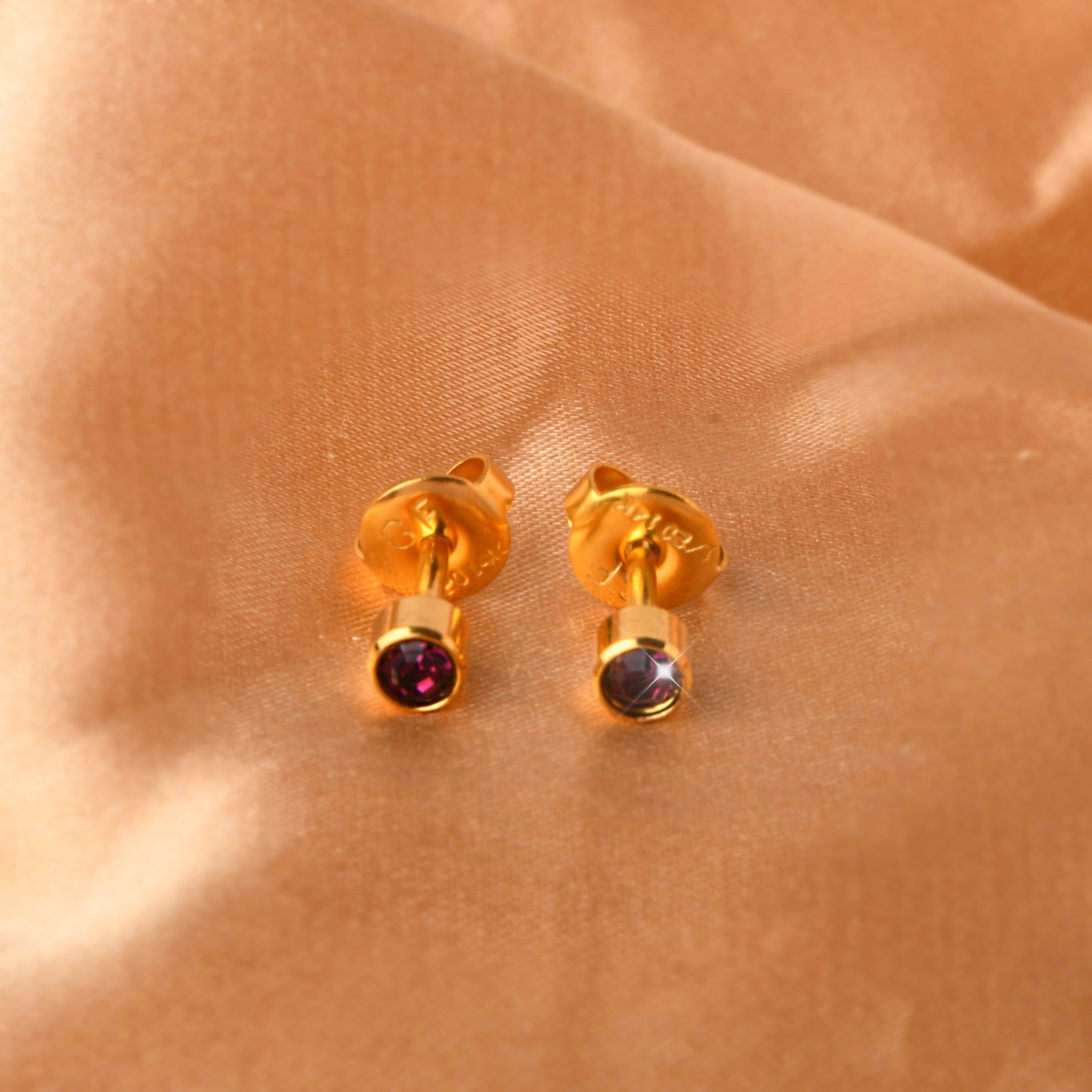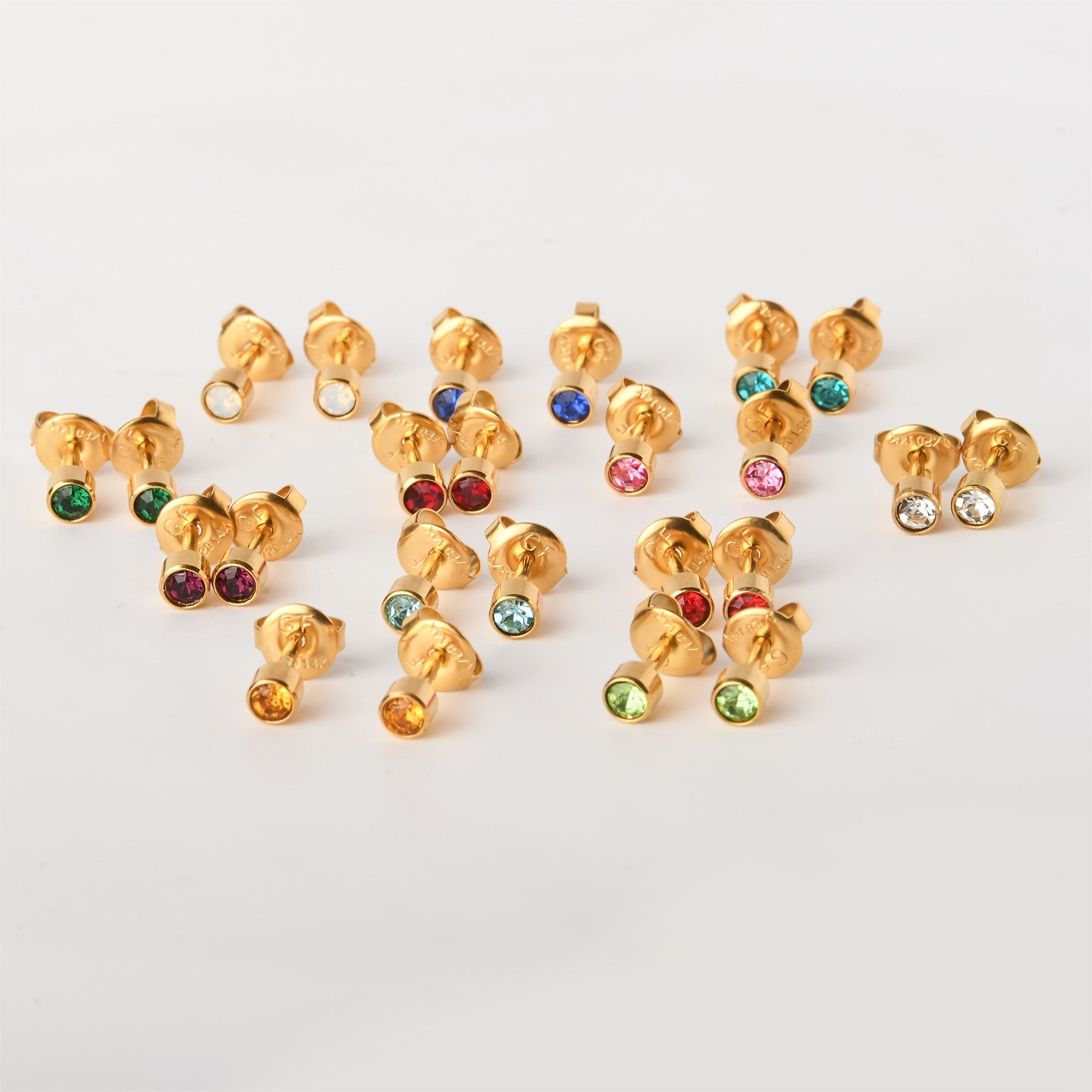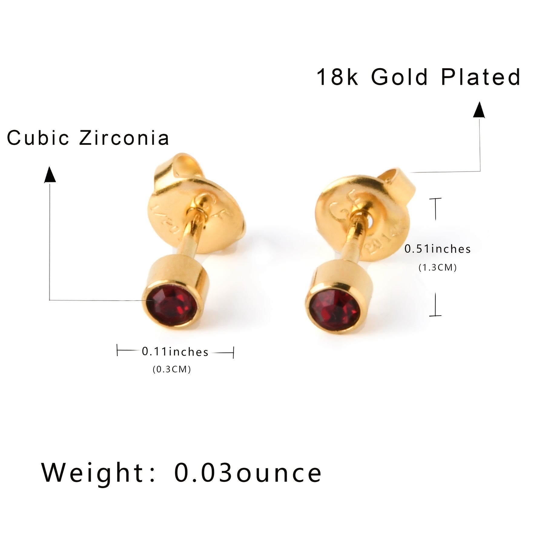 These stylish birthstone stud earrings are perfect for girls and ladies. They are plated with 18K gold and feature an adjustable design. Ideal for birthdays and Christmas gifts.