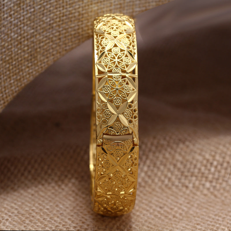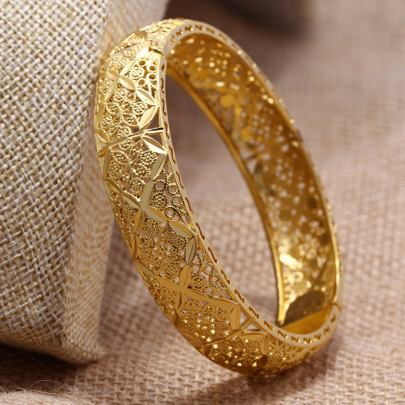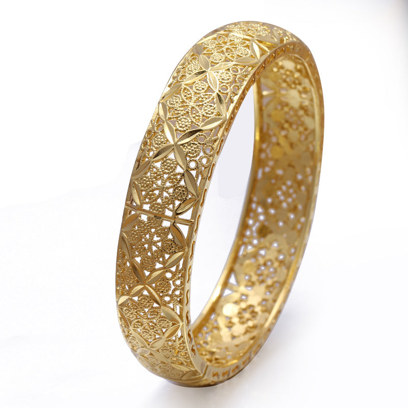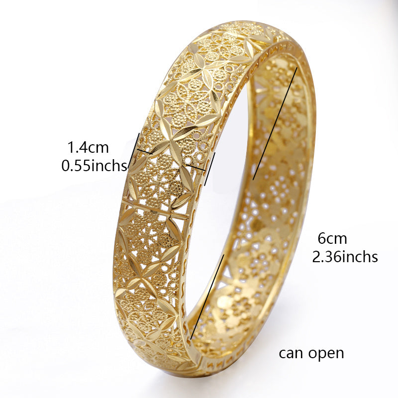 18K Plated Copper Bangle Bracelet Hollow Out Pattern Ramadan Decor