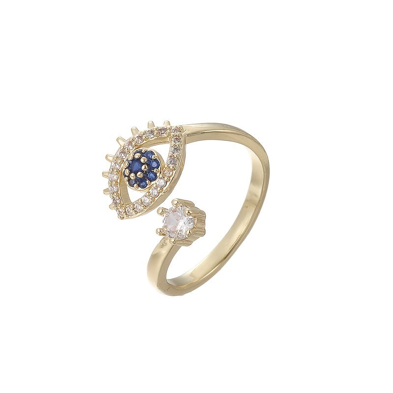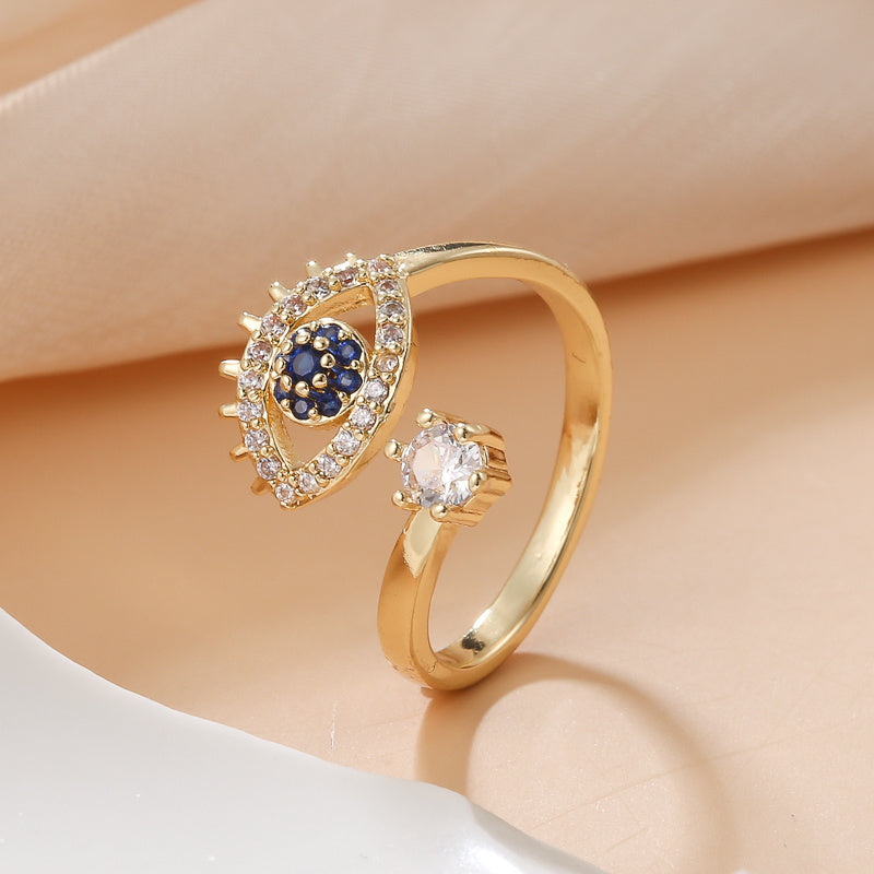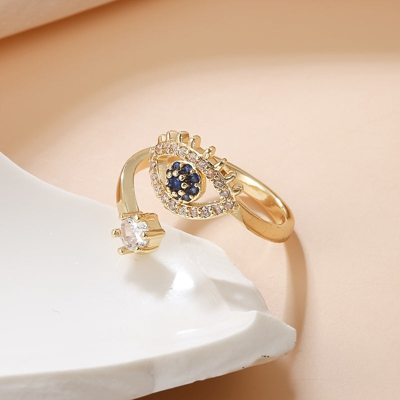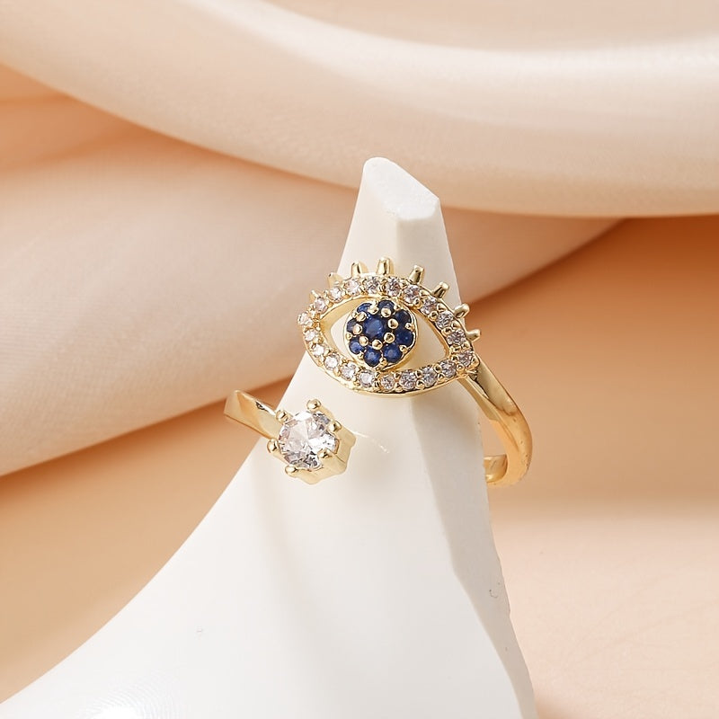 Add a touch of mystique to your outfits with this dainty cuff ring featuring a devil eye design with sparkling zircon inlays. Perfect for everyday wear or special occasions.