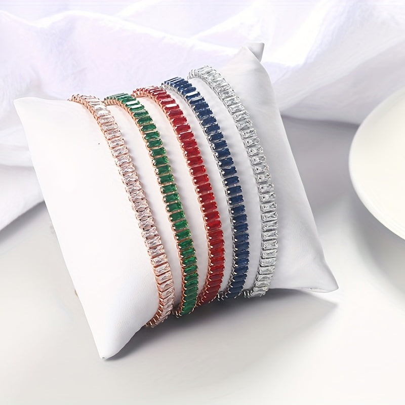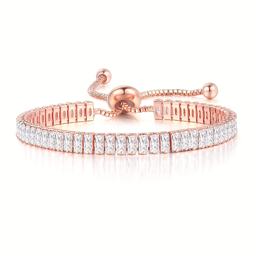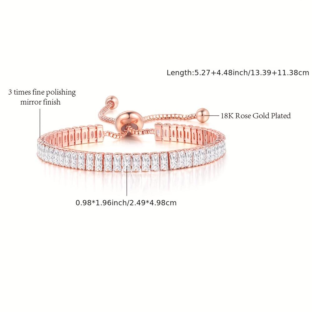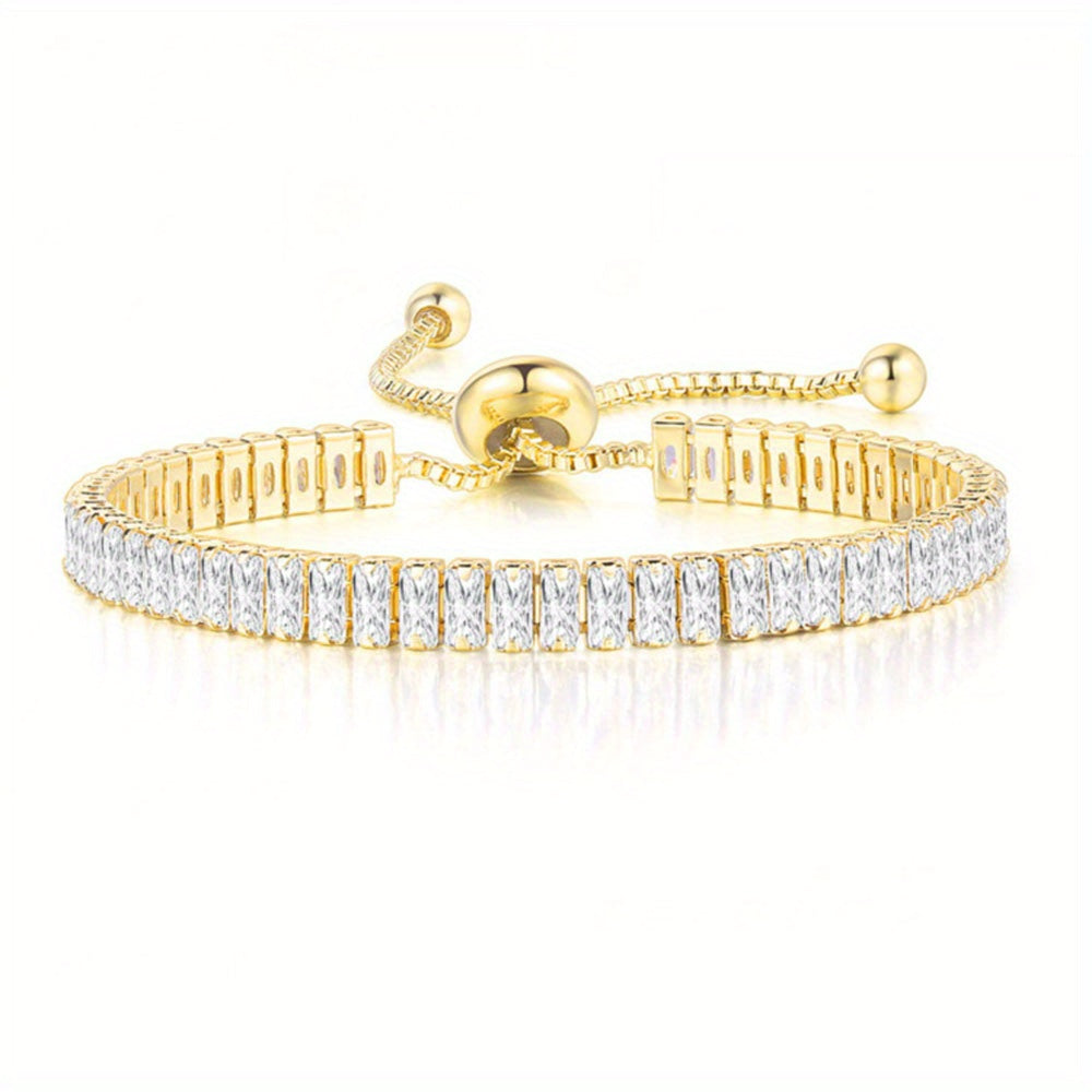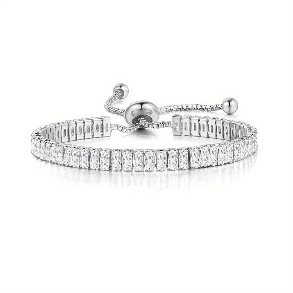 This sparkly tennis bracelet features an adjustable chain with rectangle zircon stones, adding a touch of personality to your hand jewelry collection. Made with high-quality materials, this bracelet is perfect for women with a unique style.