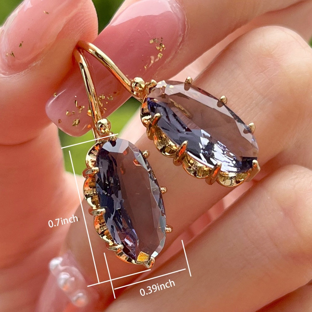 18K Plated Wedding Dangle Earrings Oval Faux Gemstone Women's Jewelry