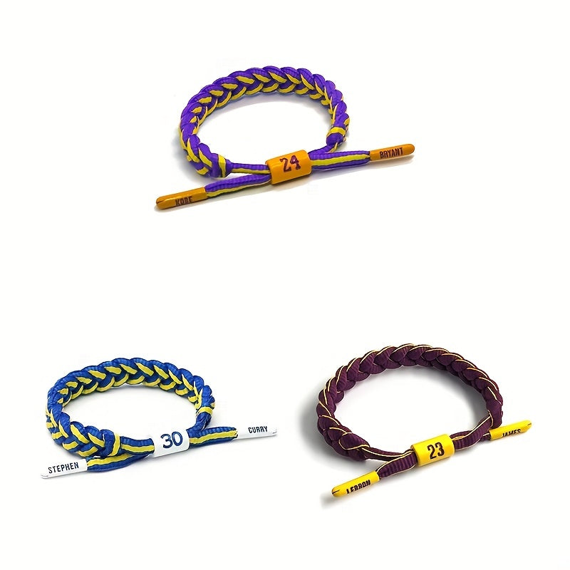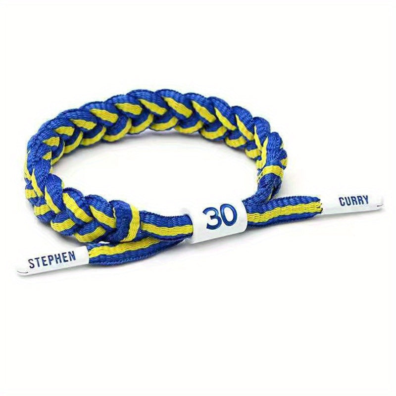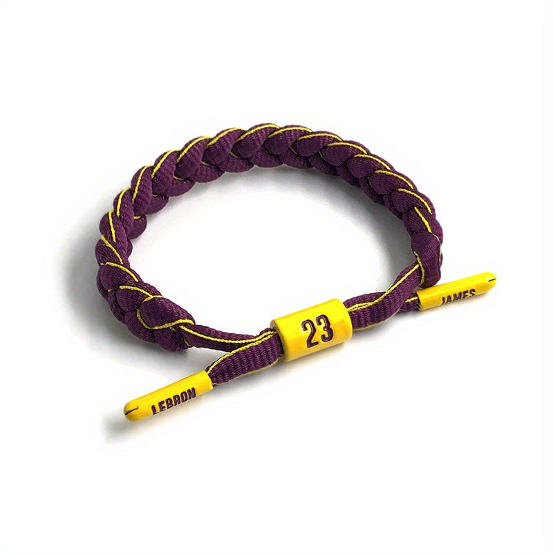 Show your support for your favorite basketball star with this woven sports bracelet. Perfect for fans to wear during games or everyday.