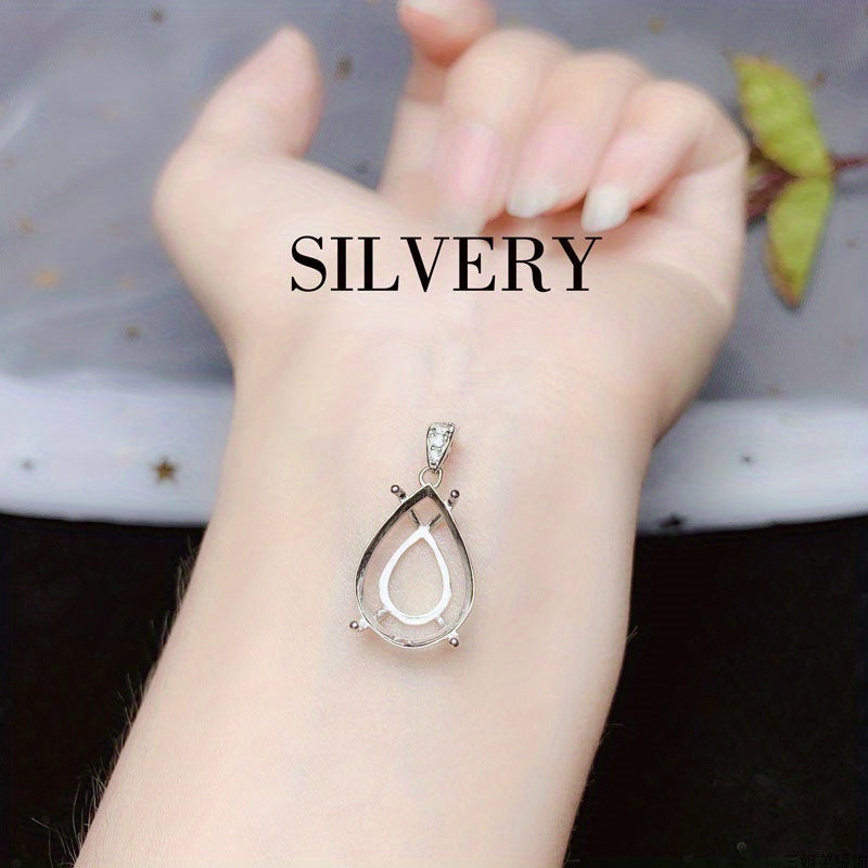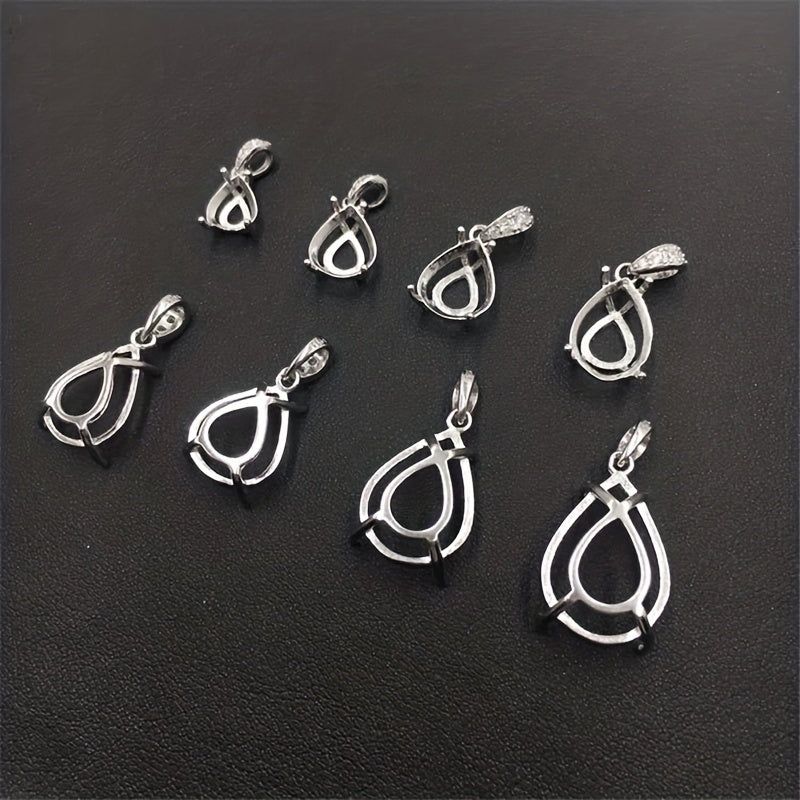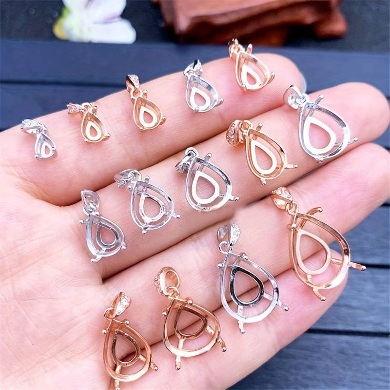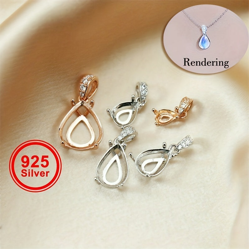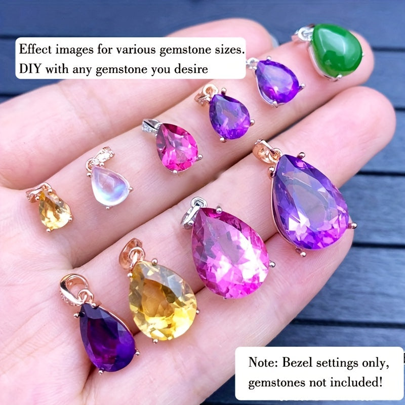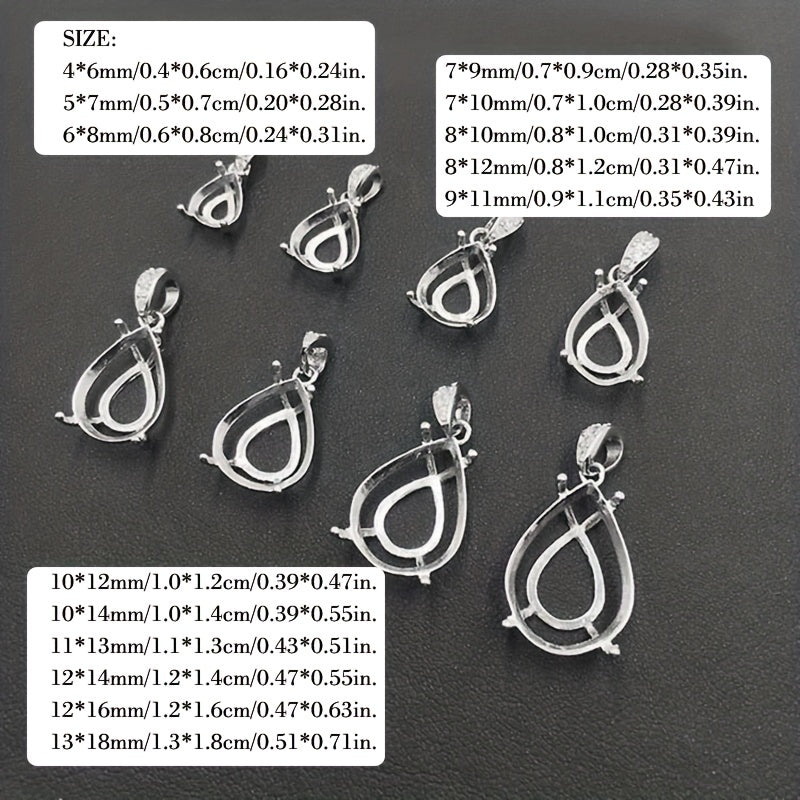 1Pc Tear Drop Shape Gem Prong Bezel Setting 925 Sterling Silver DIY Pendant