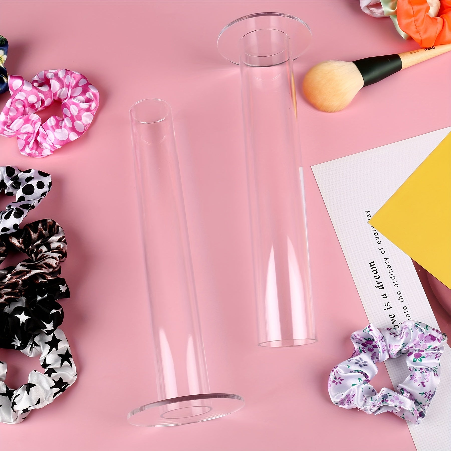 Keep your hair scrunchies and ties organized with this 2 pack scrunchie holder stand. Perfect accessory for girls' room organization.