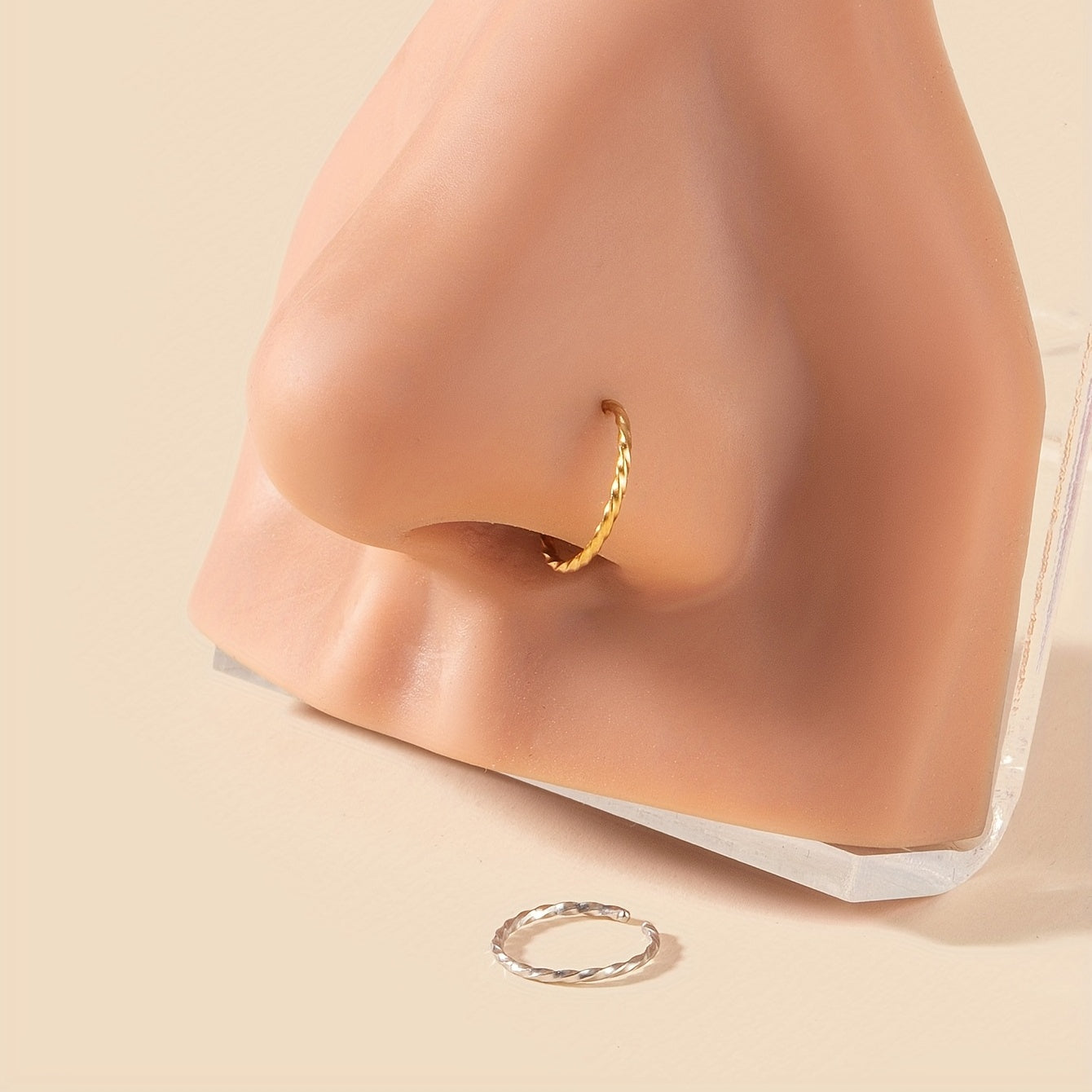 This set includes 2 C-shaped nose septum nostril nails for a stylish and edgy look. Made of high-quality materials, these piercings are a perfect addition to your body jewelry collection.