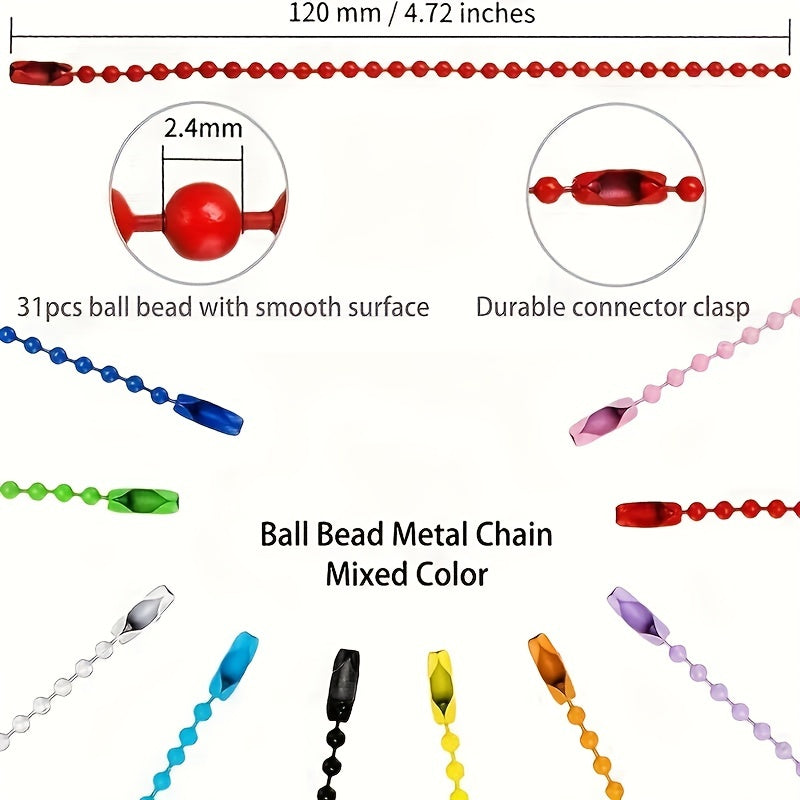 Get 20 or 40 pieces of colorful beaded metal chain for your DIY projects. These candy round beaded chains are perfect for creating unique bag pendants. Each chain is a random mix of colors.