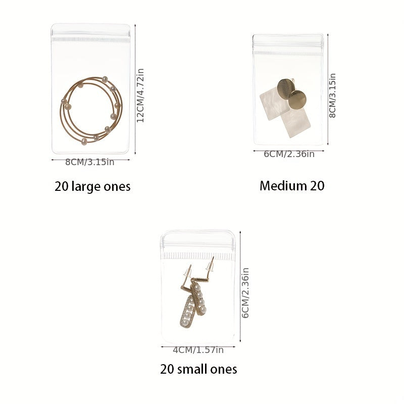 Keep your jewelry safe and organized with this set of 20 anti-oxidation storage bags. Perfect for earrings, necklaces, bracelets, and rings.