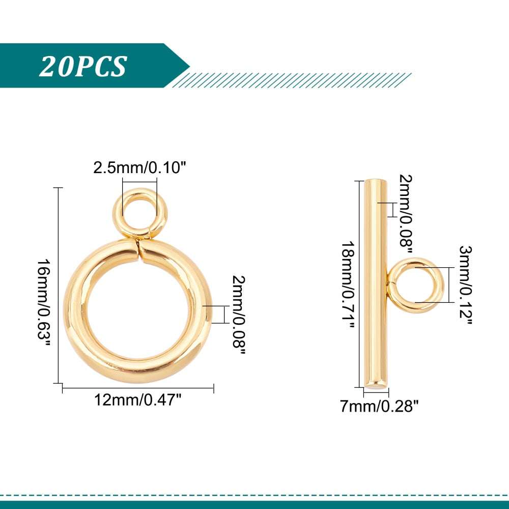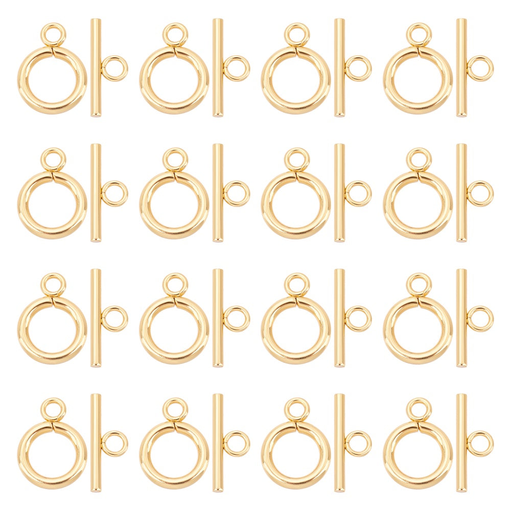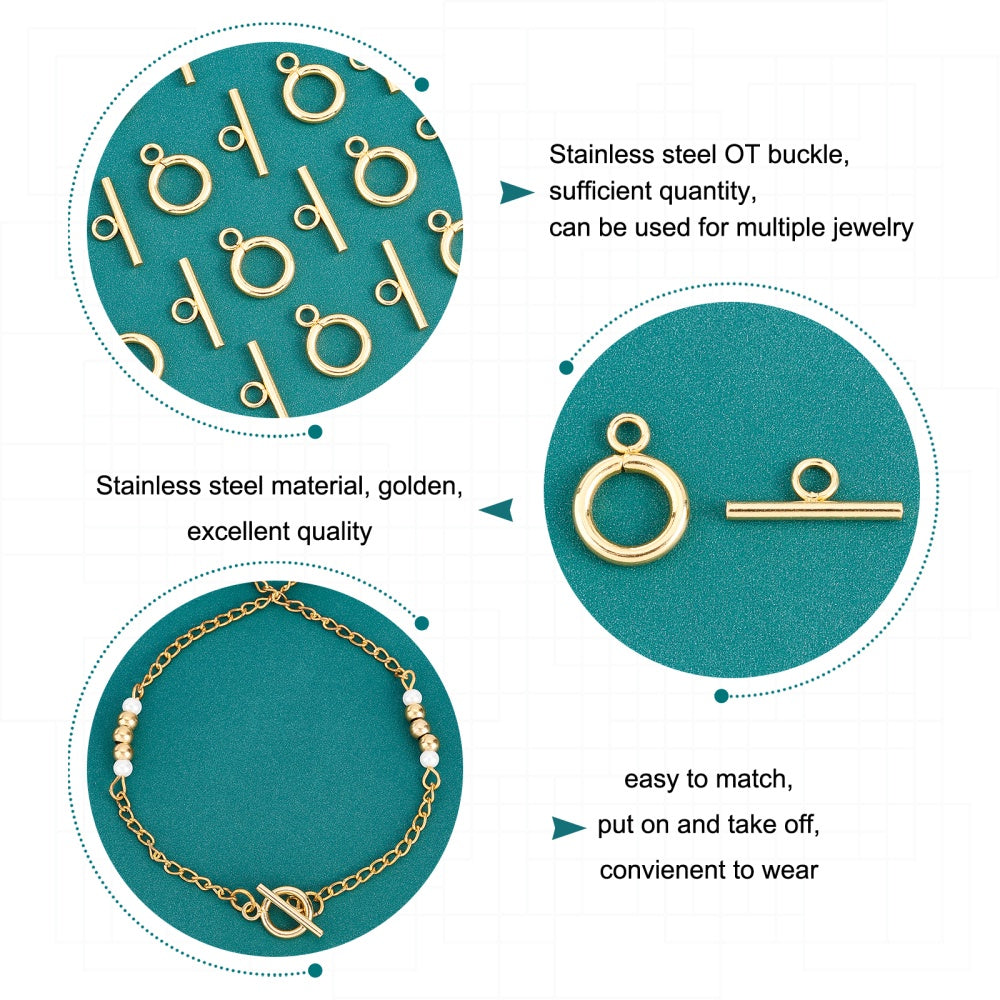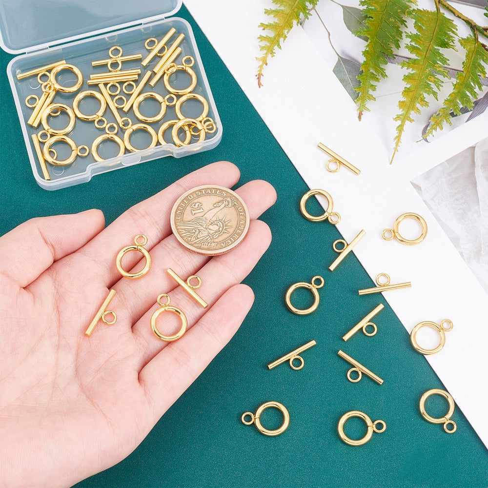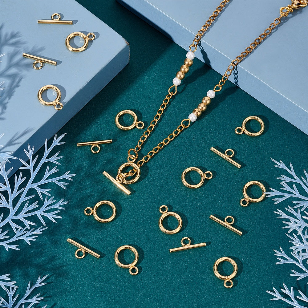 Create stunning DIY jewelry with this set of 20 golden toggle clasps made from 304 stainless steel. Perfect for necklaces, bracelets, and more.