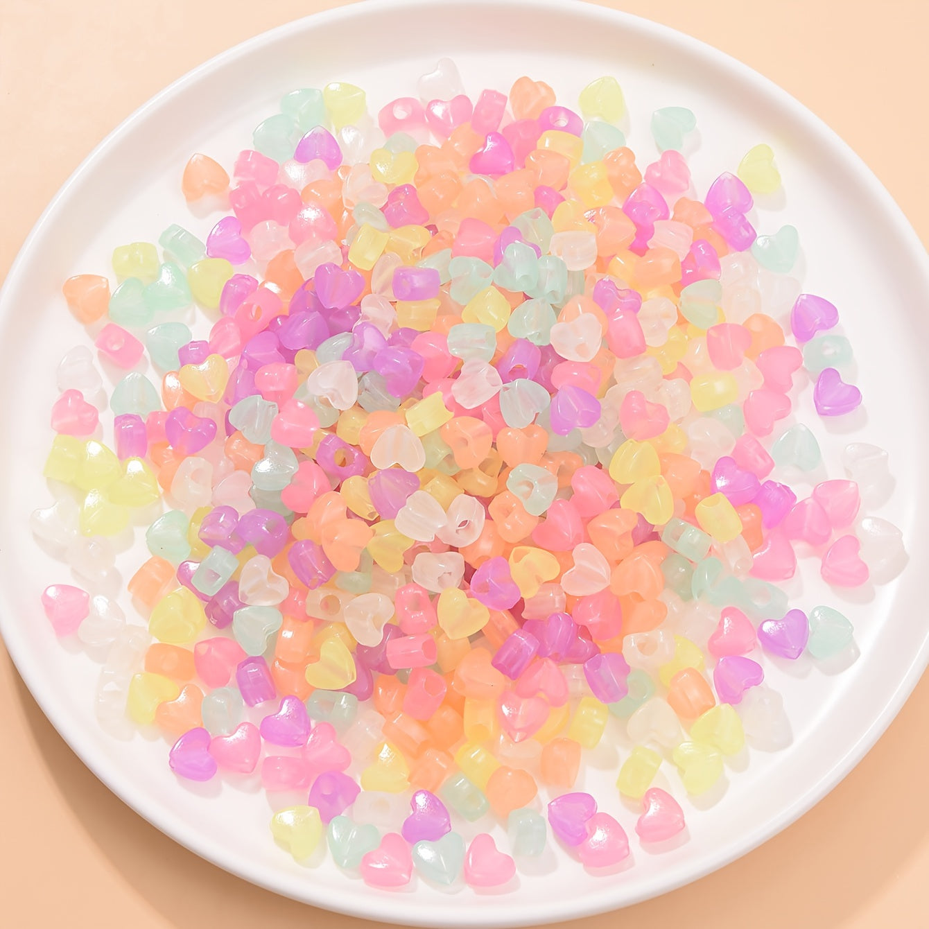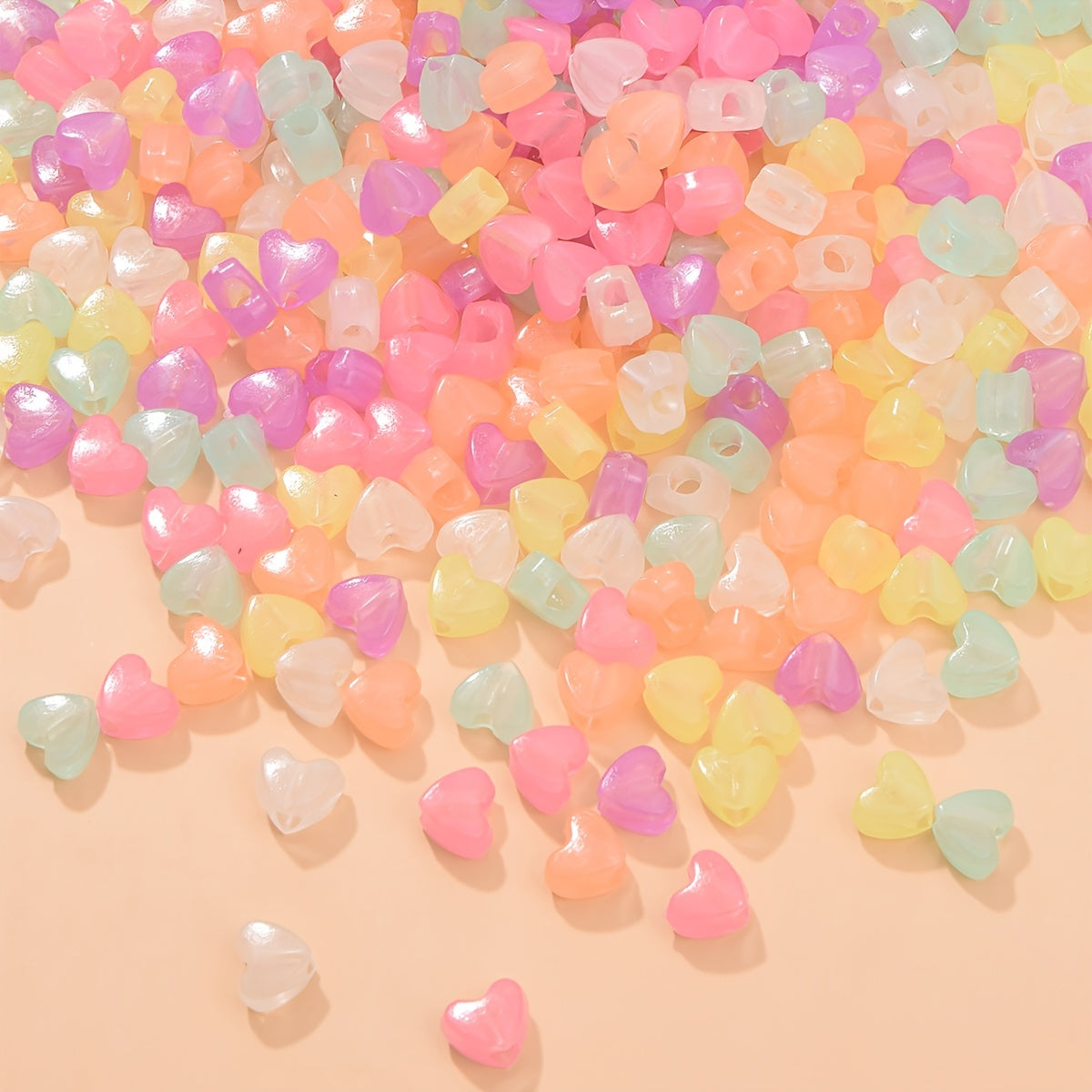 These heart-shaped beads are perfect for making DIY jewellery pieces like necklaces and bracelets. They glow in the dark, adding a fun touch to your creations.