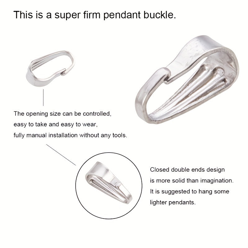 Enhance your jewelry making projects with these stainless steel snap bail hook pinch clip pendant clasps. They are ideal for connecting dangle charms to your creations.