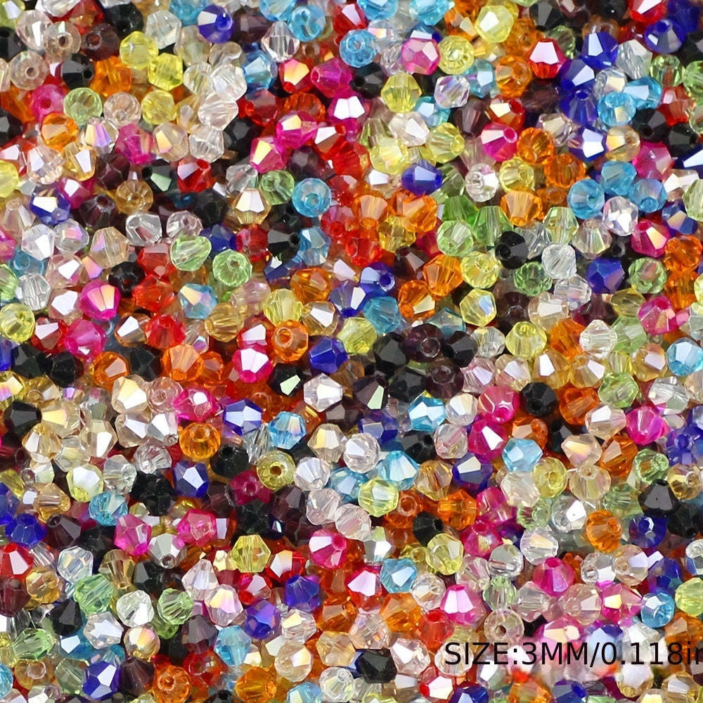 Get a set of 200 rhombus-shaped glass crystal beads in various colors for your DIY jewelry projects. These beads are 3mm in size and plated for added durability.