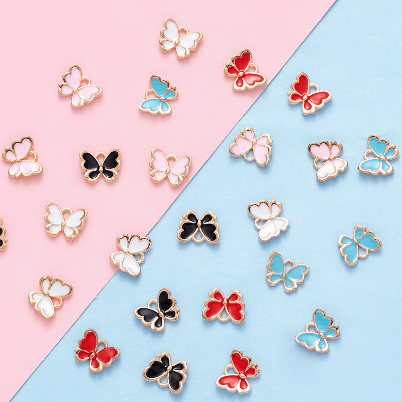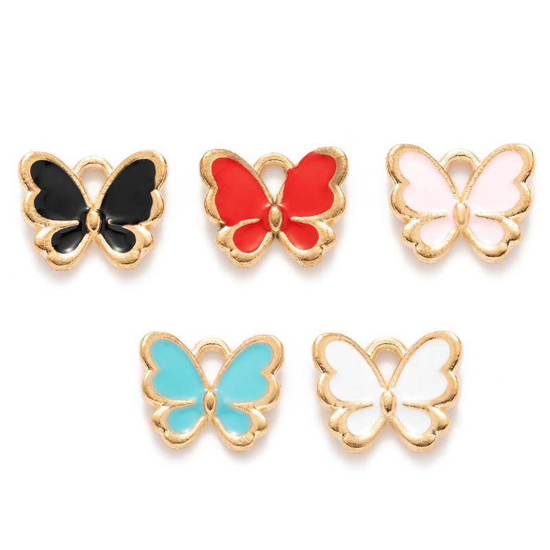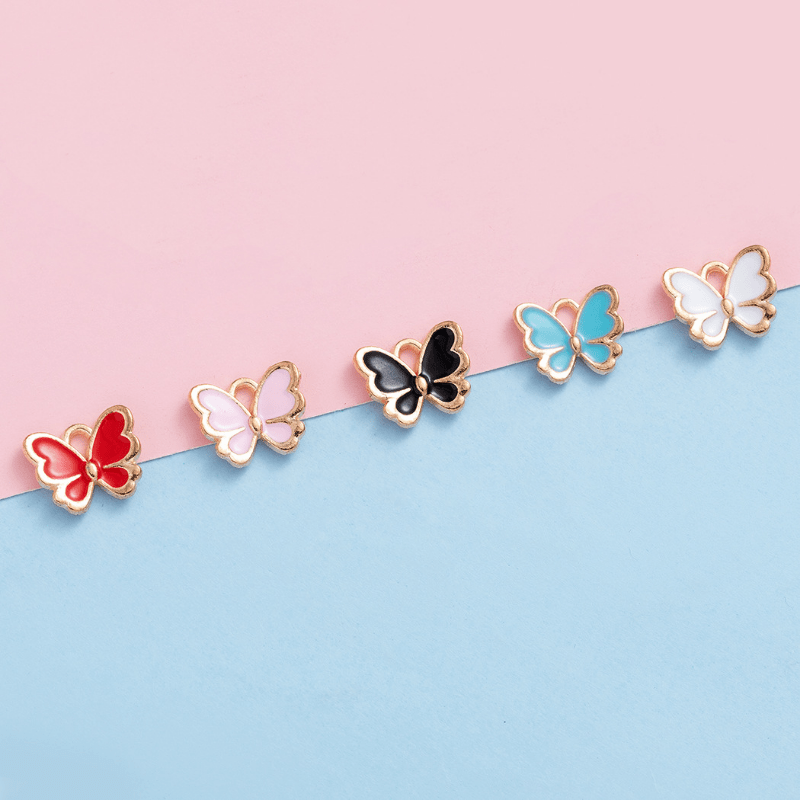These vibrant enamel butterfly pendants are perfect for creating your own earrings, bracelets, necklaces, and more. Add a pop of color and whimsy to your accessories with these fun and versatile pendants.