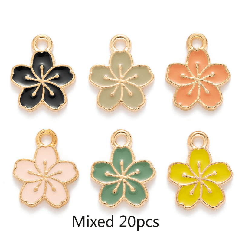 Enhance your jewelry making with these 20 colorful Sakura flower alloy pendants. Perfect for DIY projects and adding a touch of charm to your accessories.