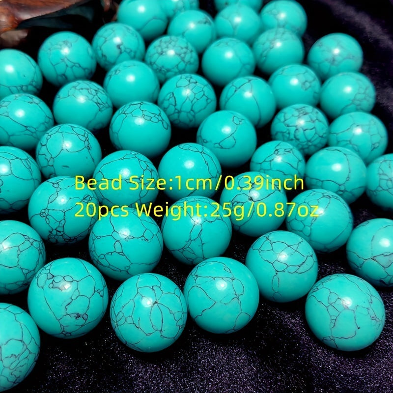 Add a touch of elegance to your decor with this set of 20 non-porous turquoise balls. Each ball measures about 10mm in diameter and is perfect for a variety of decorative purposes.