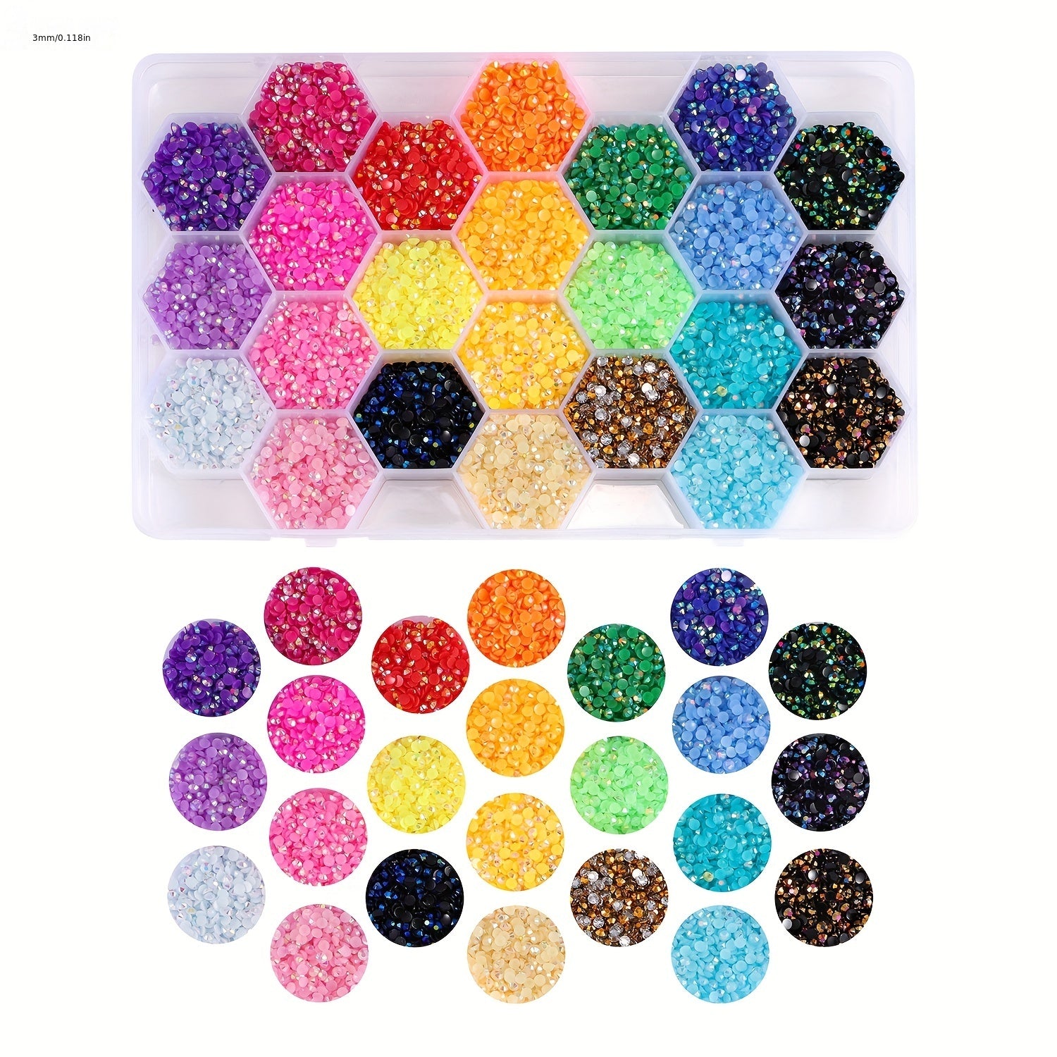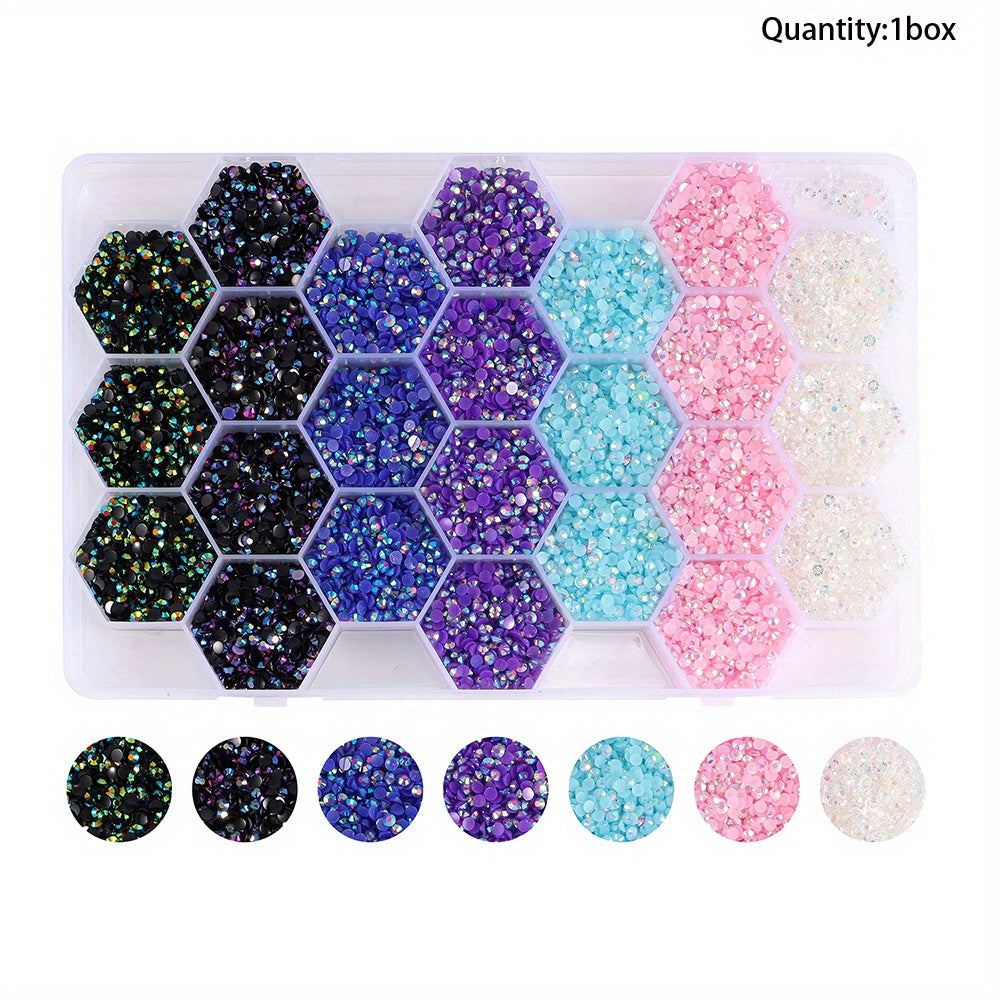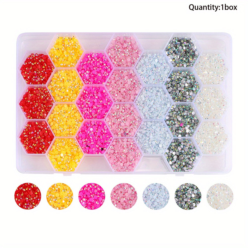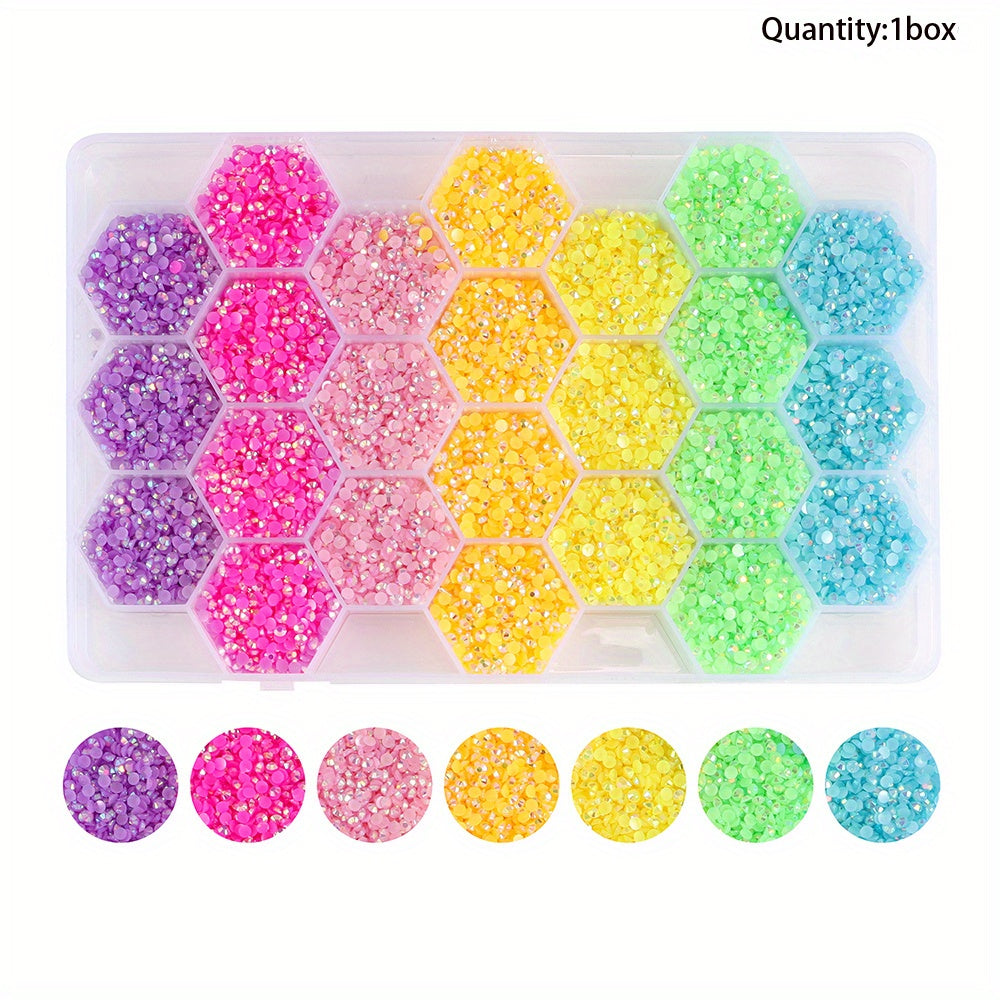 This set includes 24000pcs of 3mm multicolor resin jelly beads in a 24-grid box, ideal for DIY jewelry making and crafting.