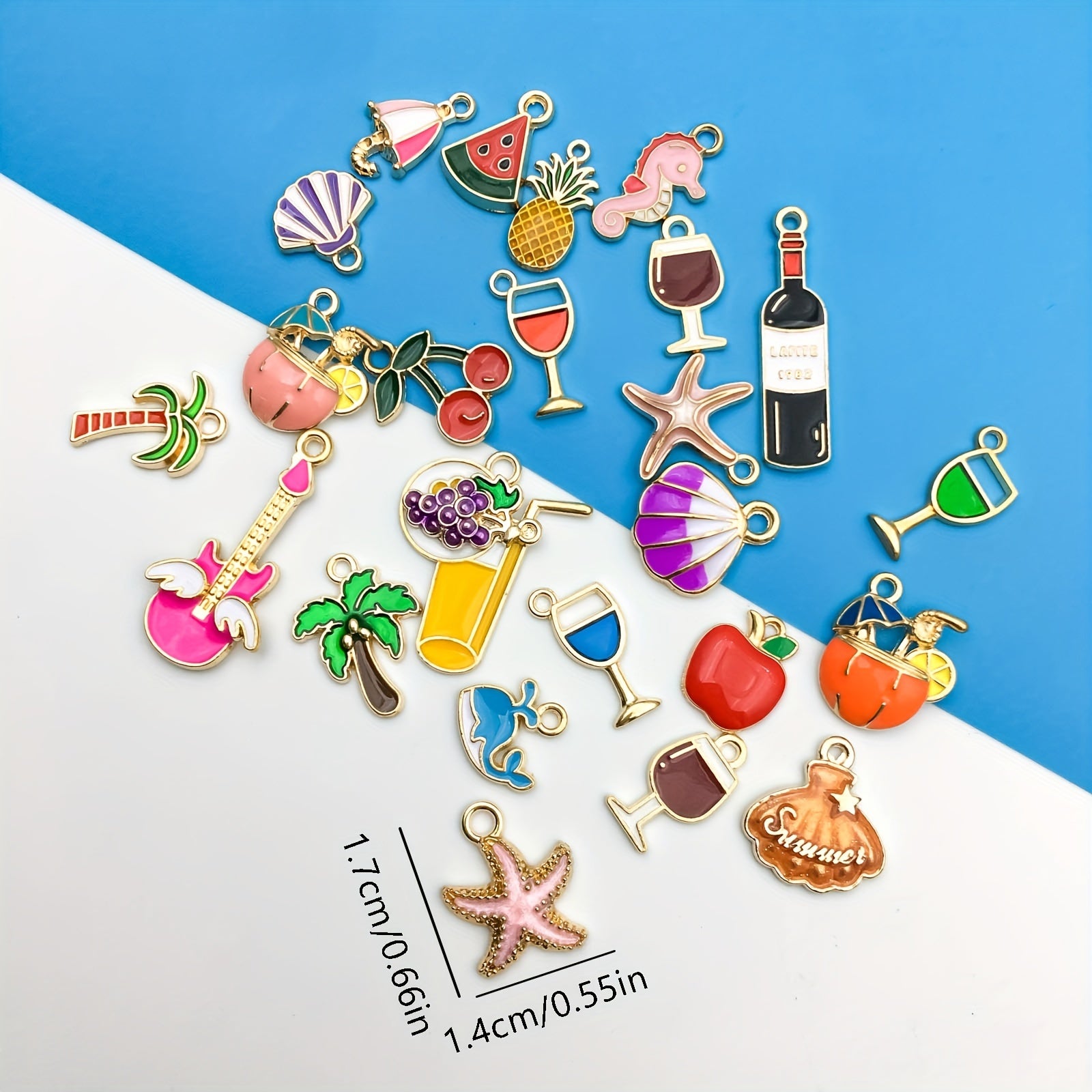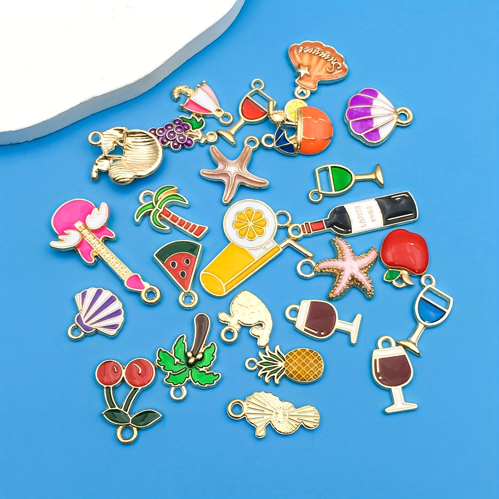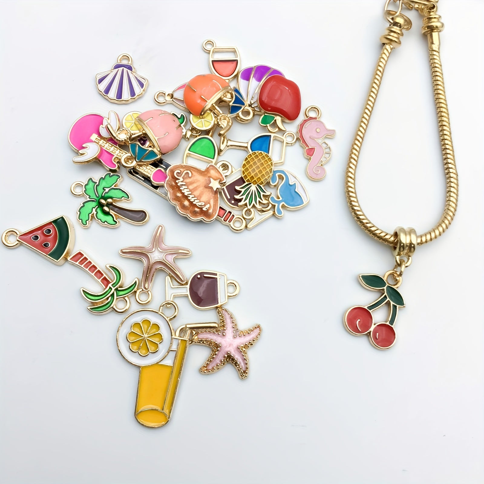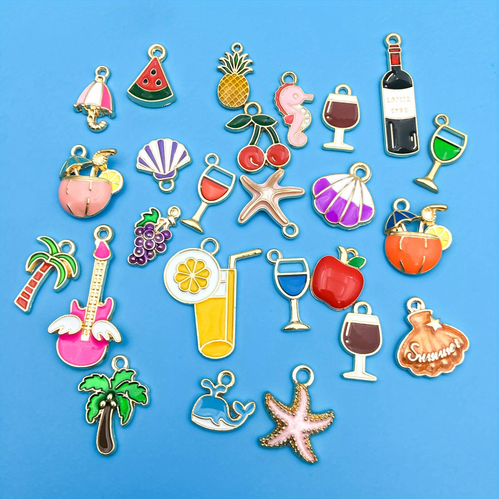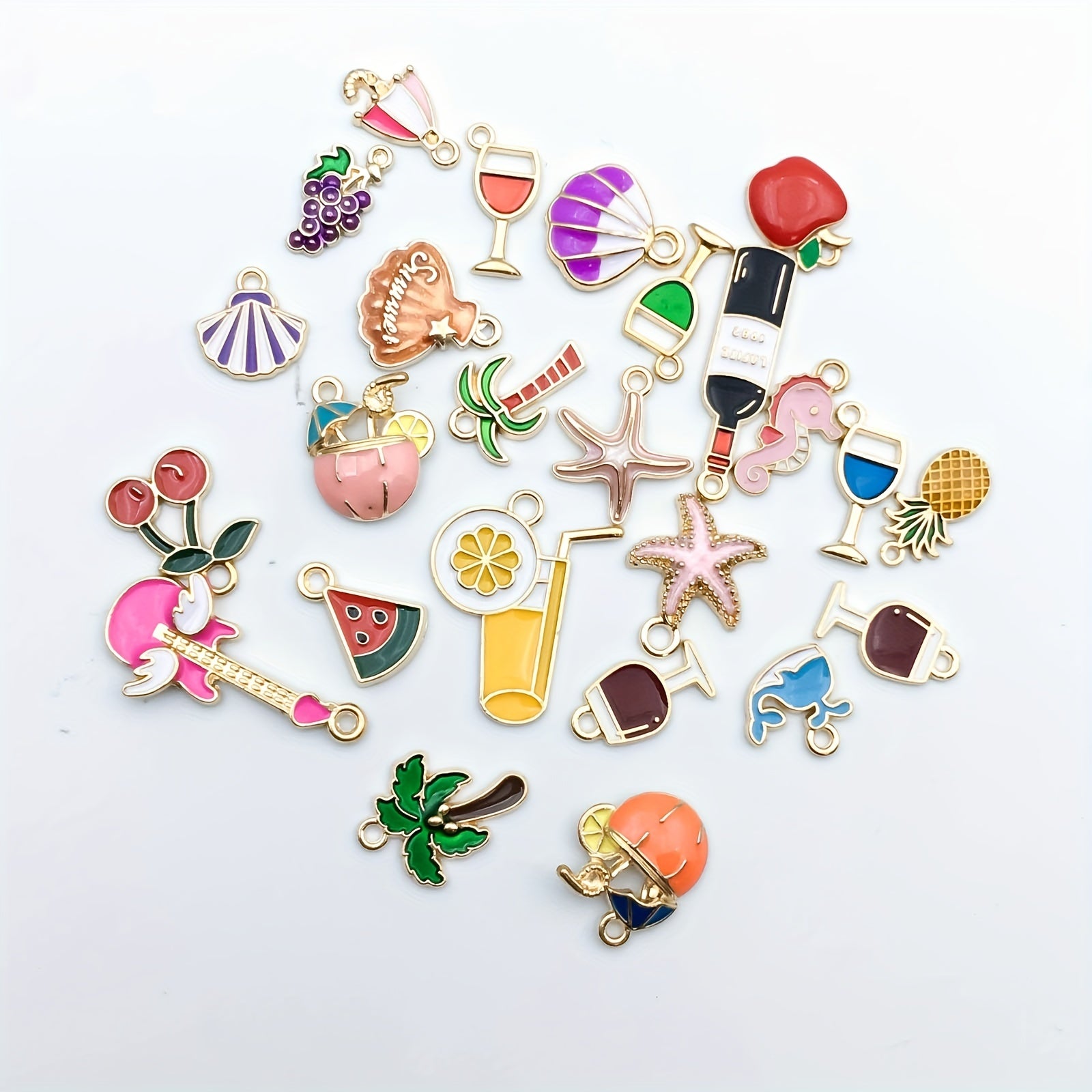Create stunning summer beach style jewelry with these starfish, shell, and beverage shaped charms. Perfect for necklaces, bracelets, and earrings.