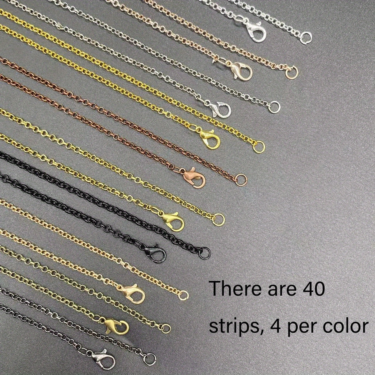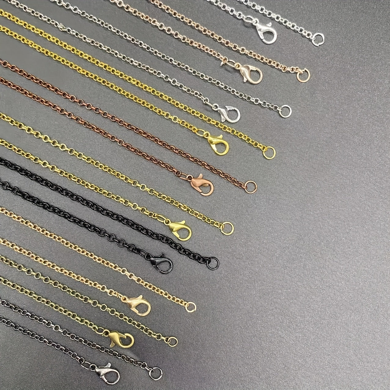 This set includes 10 combinations of 2.5mm round cross chains with hanging lobster clasps, perfect for DIY jewelry making.