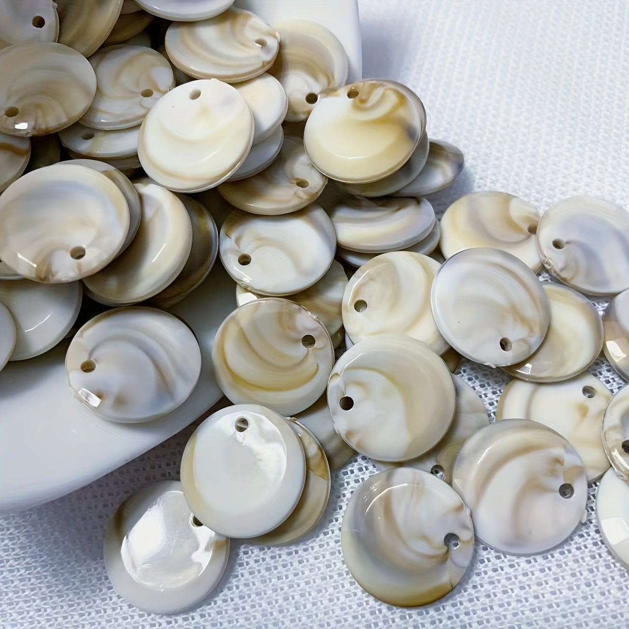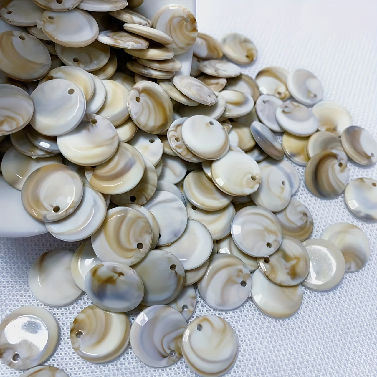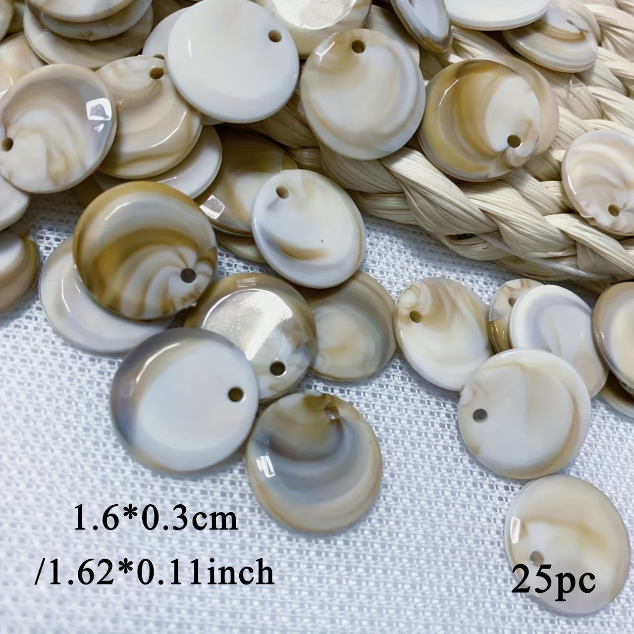 Enhance your jewelry making with this set of 25 round seashell pendants. Perfect for creating unique necklaces, bracelets, anklets, and more with their irregular patterns.