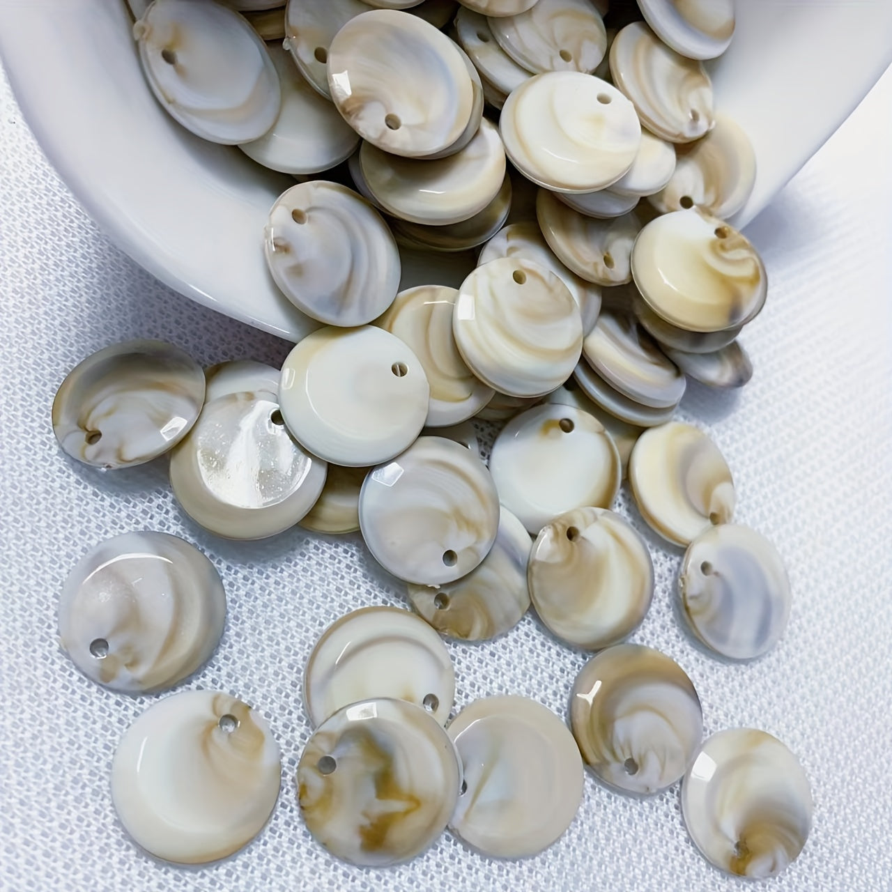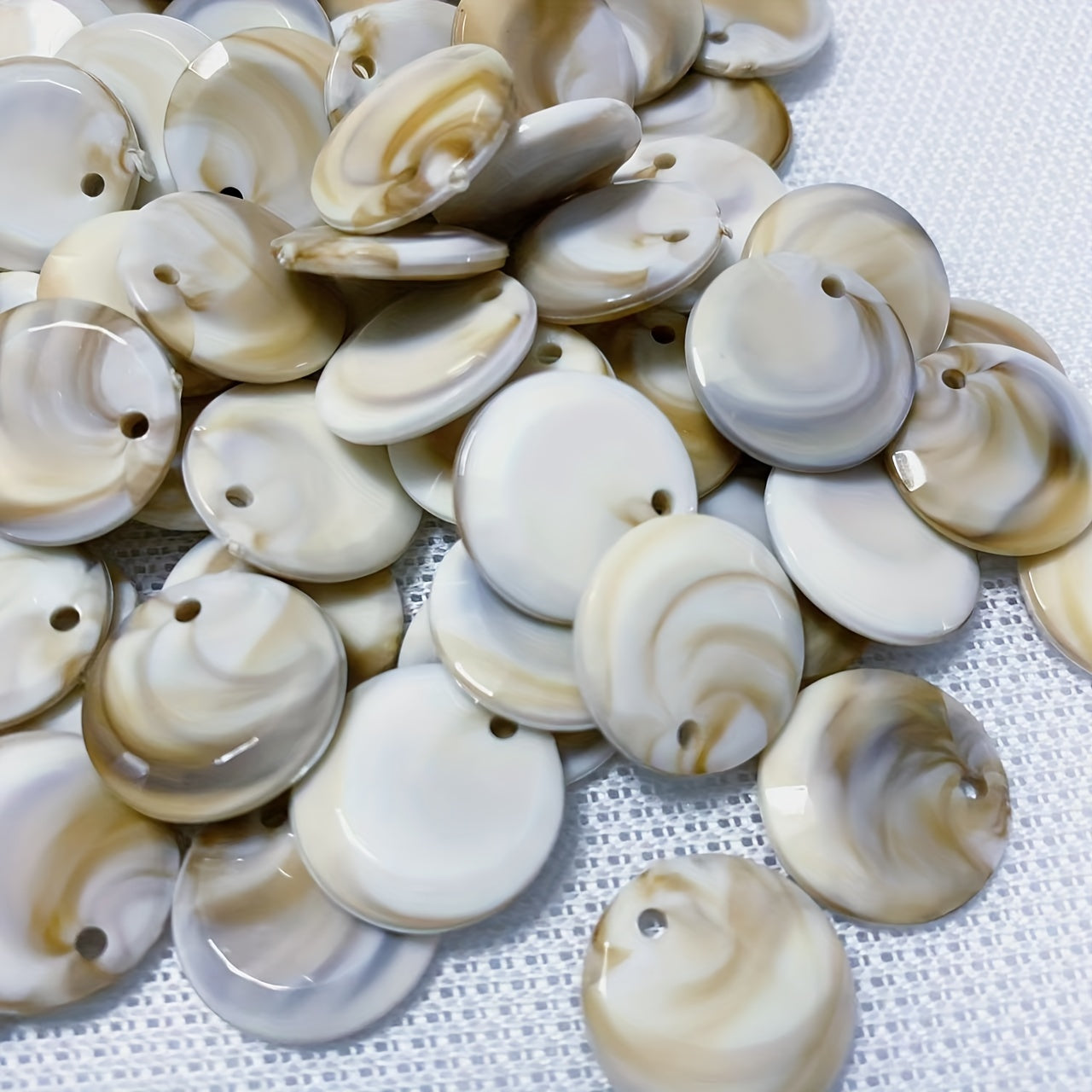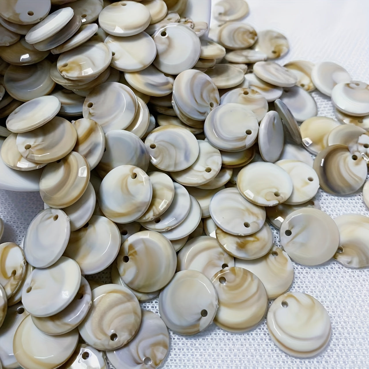 Enhance your jewelry making with this set of 25 round seashell pendants. Perfect for creating unique necklaces, bracelets, anklets, and more with their irregular patterns.