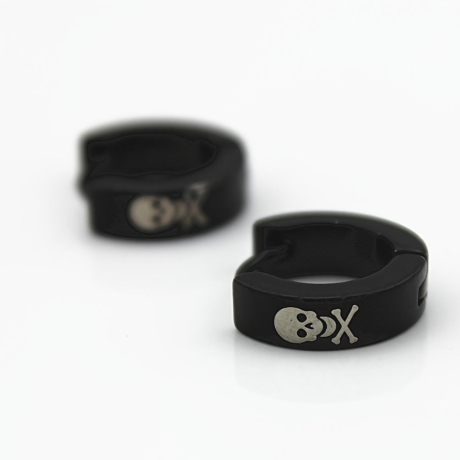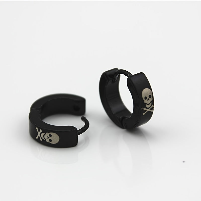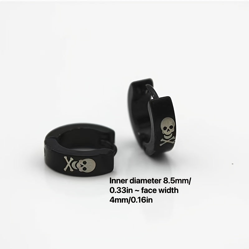 2pc Stainless Steel Skull Stud Earrings Men's Hoop Earrings