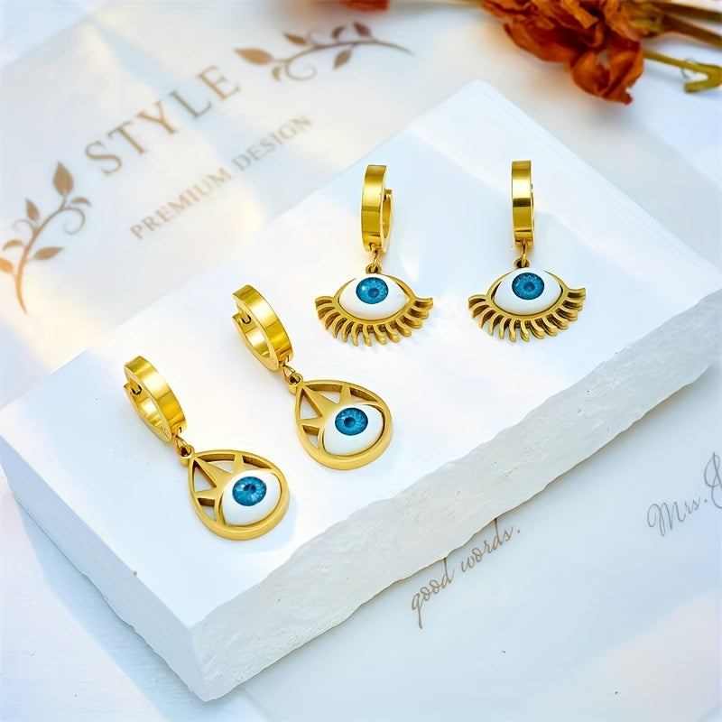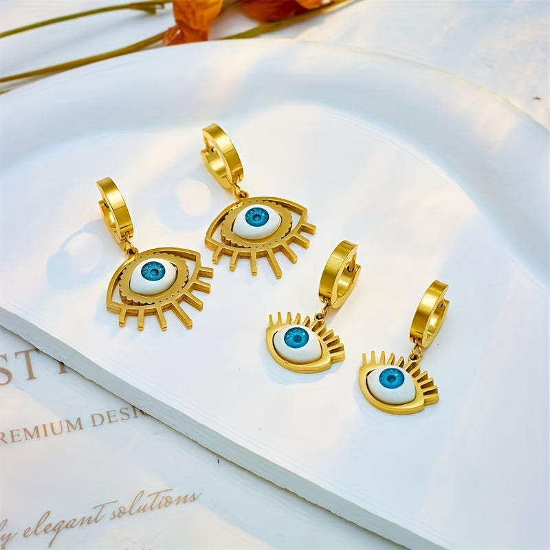 Get these 2pcs personalized devil's eye pattern titanium steel accessories that are perfect for DIY accessory making. They come in 4 different types for creating unique decor, ornaments, and pendants.