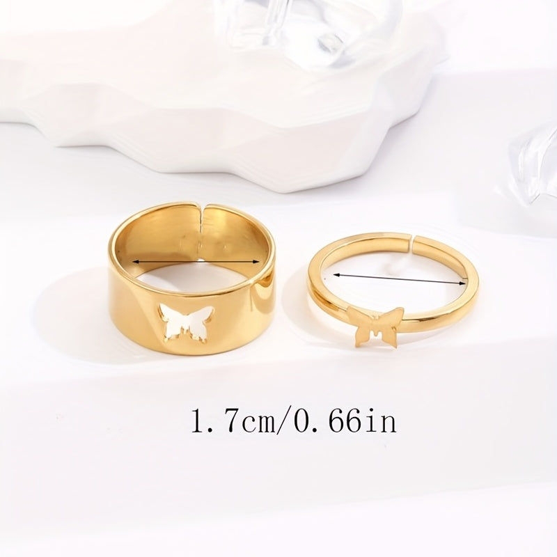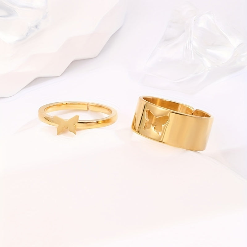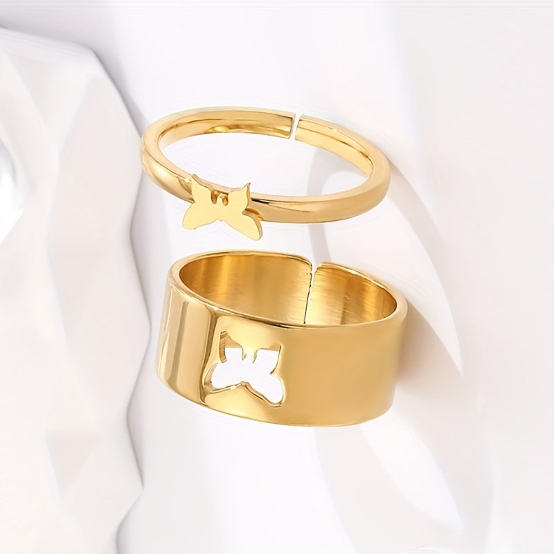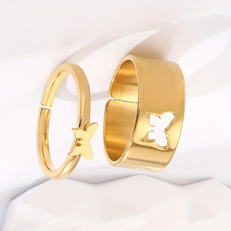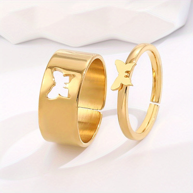 This set includes 2 rings with hollow butterfly design. Perfect for couples or friends.