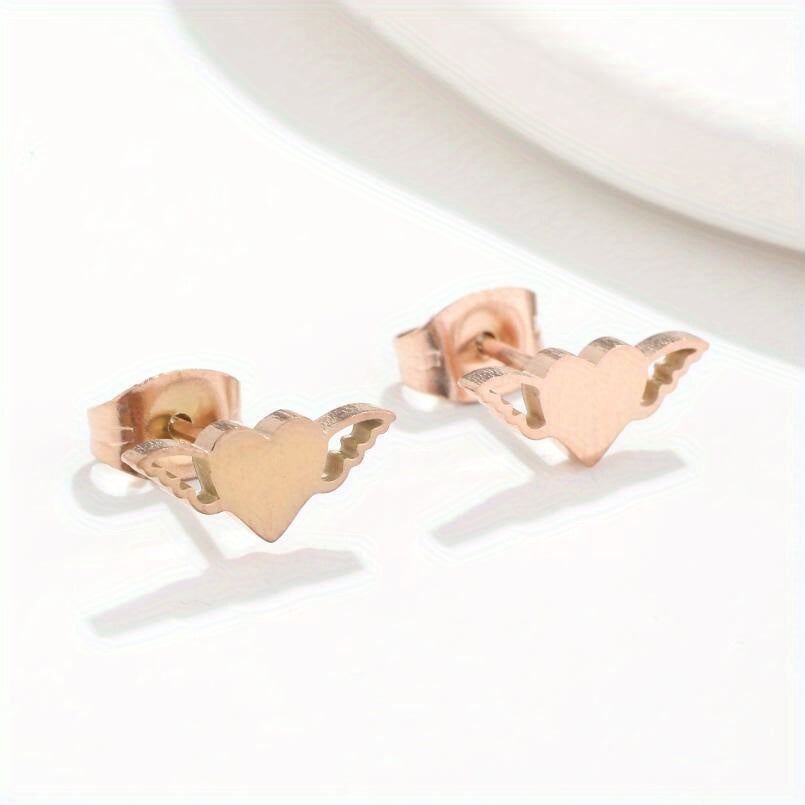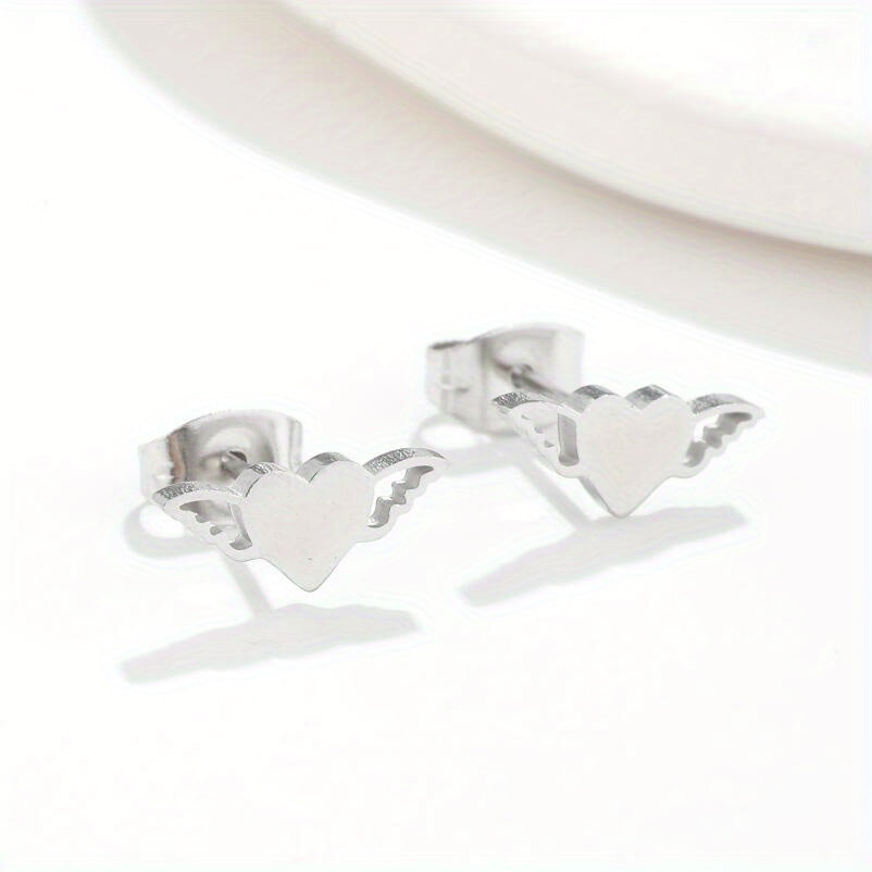 Add a touch of simplicity and style with these men's small heart shape earrings. The geometric design features heart and wing elements for a unique look.