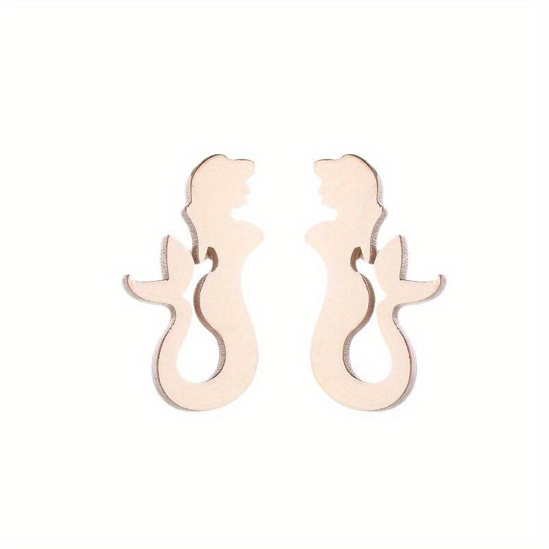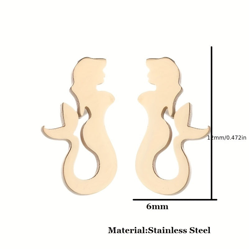 Enhance your style with these fashionable mermaid earrings. Made of durable stainless steel, these earrings are a unique accessory for any outfit.