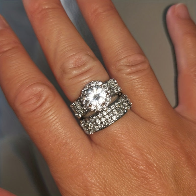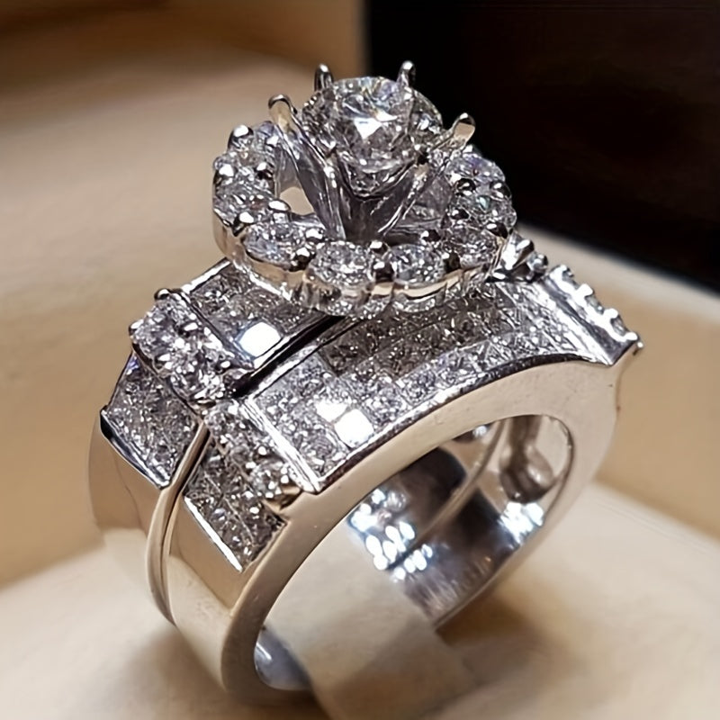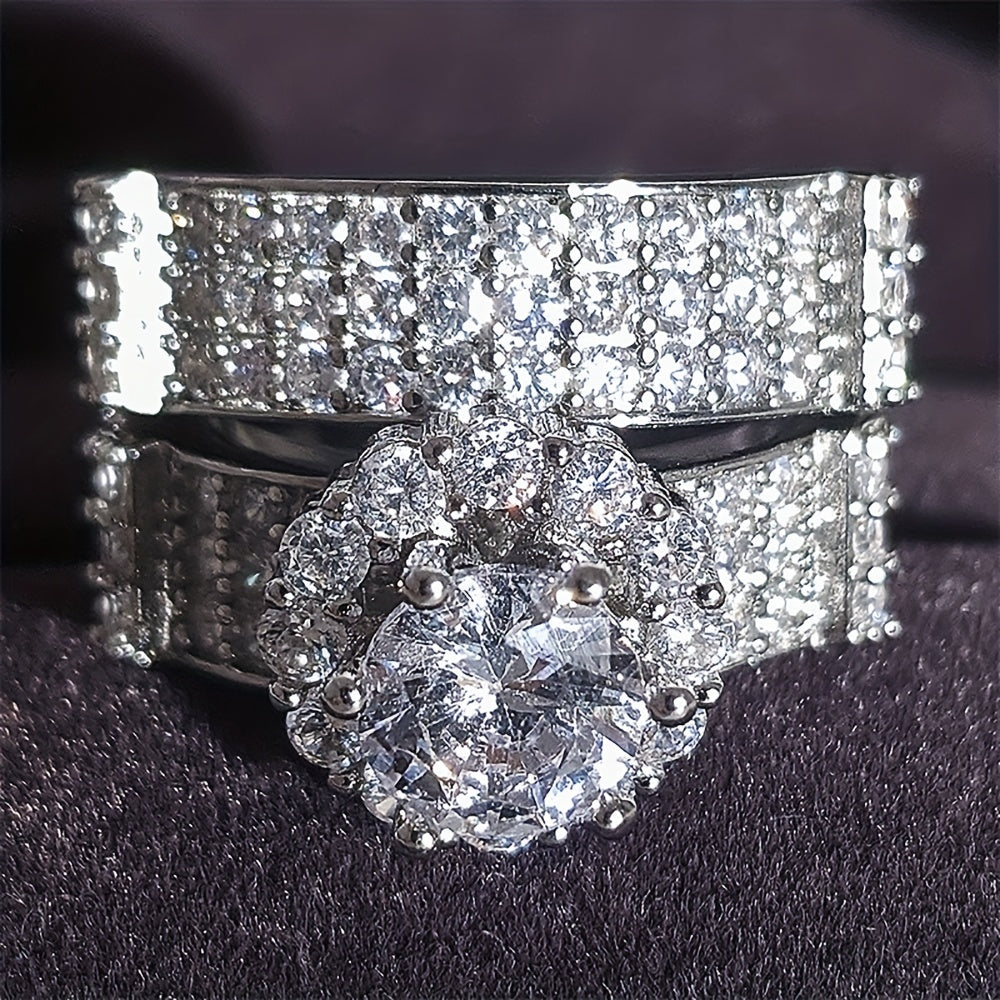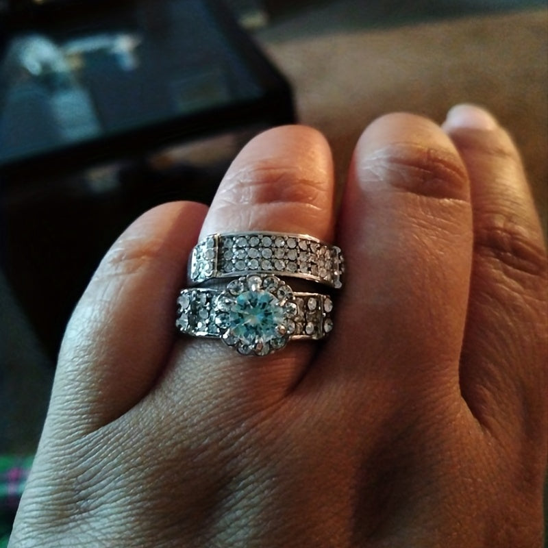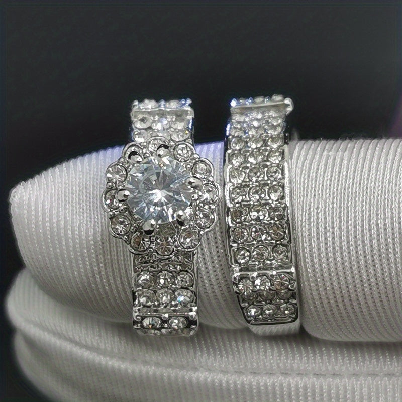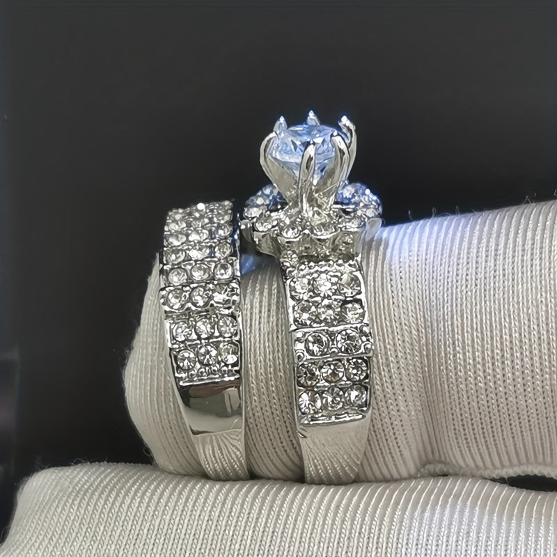 This set includes two men's rings with artificial diamond zircon, perfect for anniversary parties and engagements.
