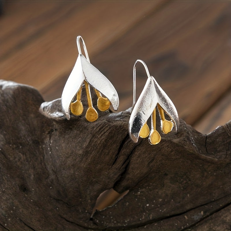 These retro orchid earhook flower earrings are perfect for both men and women. Made of silver, they feature a separation design that adds a unique touch to any outfit.