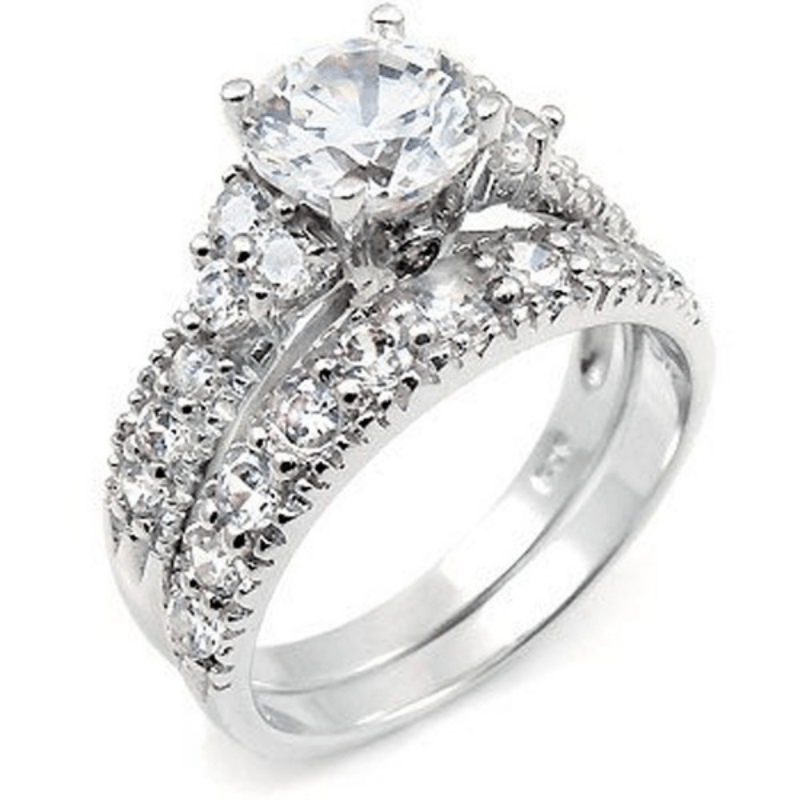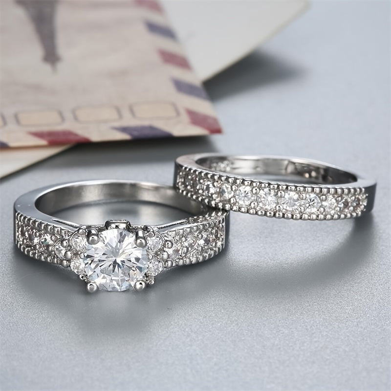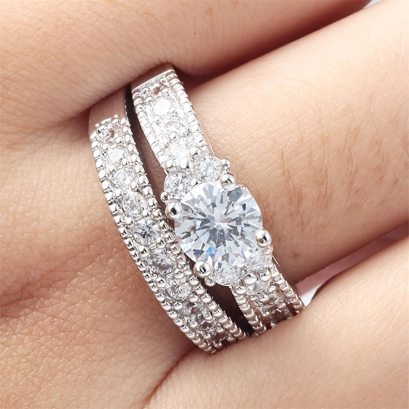 2pcs Silver CZ Engagement Rings for Her, Anniversary Bands
