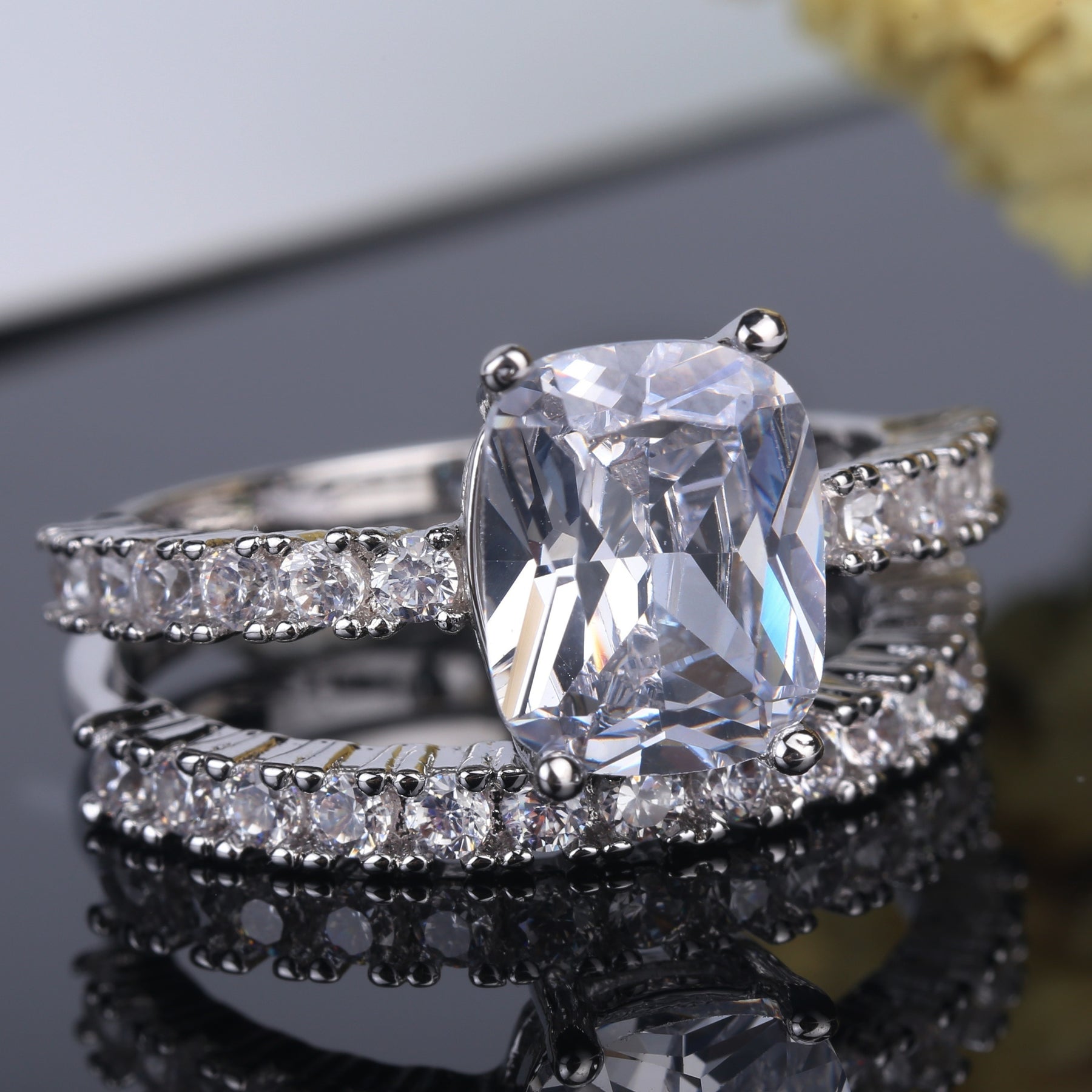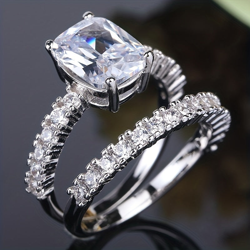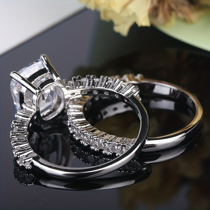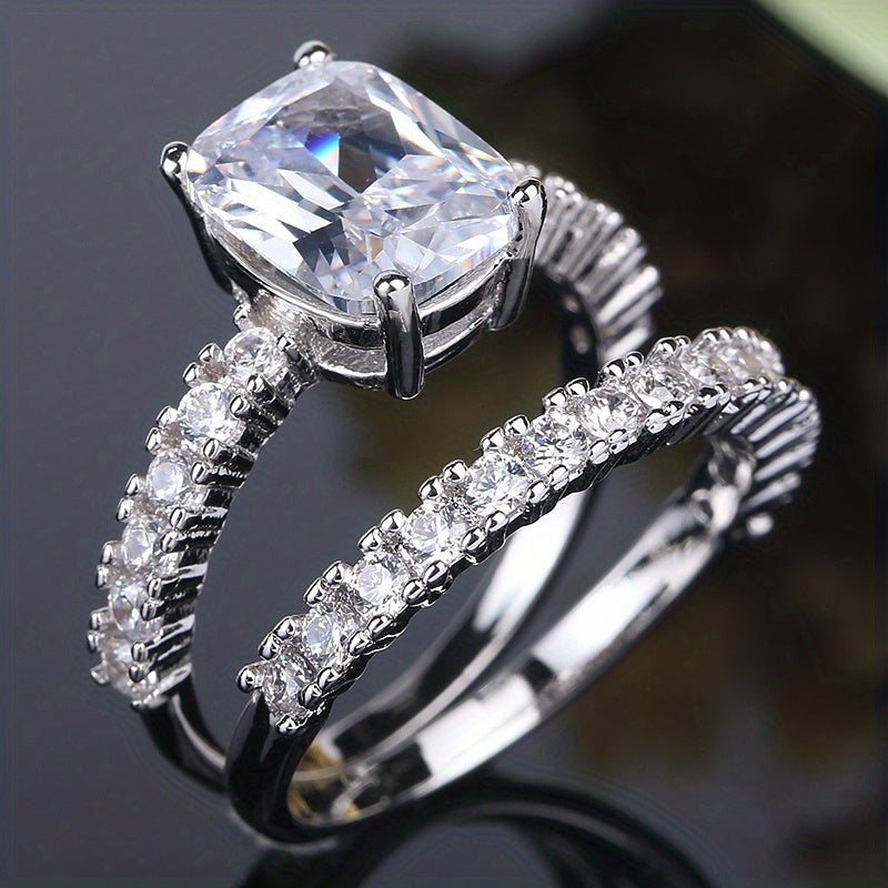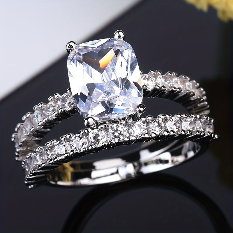 2pcs Square Rhinestone Stacking Rings for Evening Party Decor