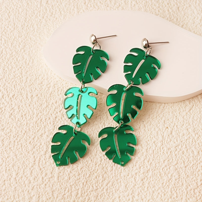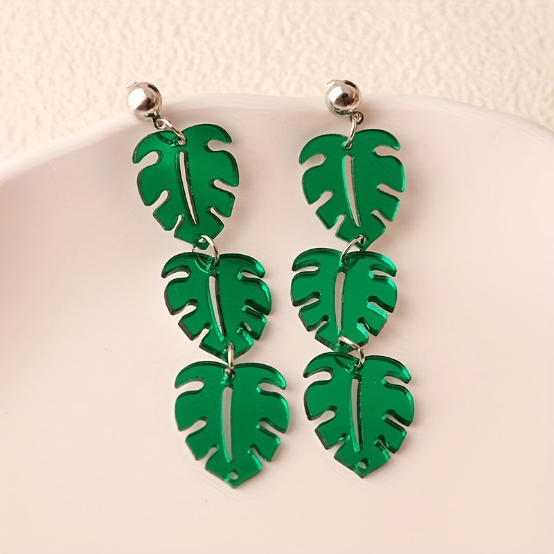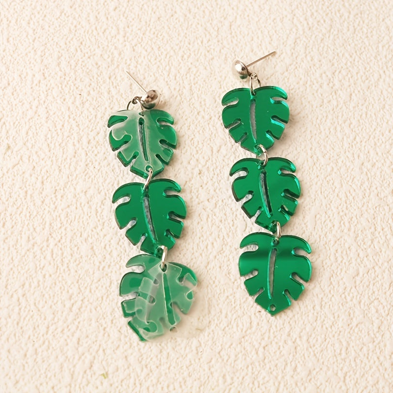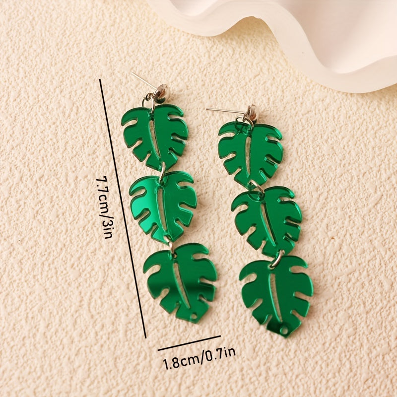 These stylish dangle earrings feature a 3 leaf pendant design in green. Made of high-quality acrylic, these earrings are a perfect gift for women and girls.