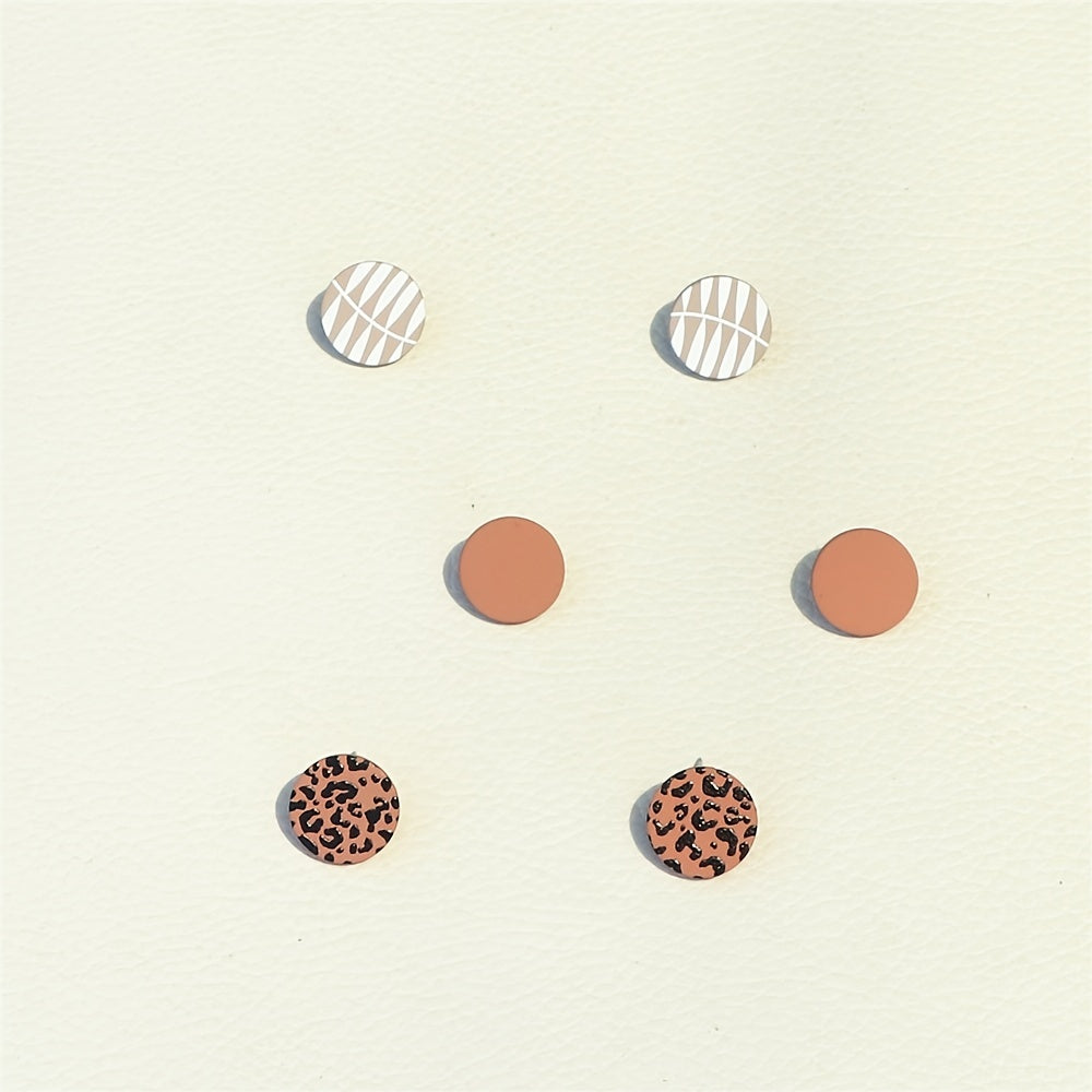 • Set of 3 pairs of earrings with a brown and leopard pattern
