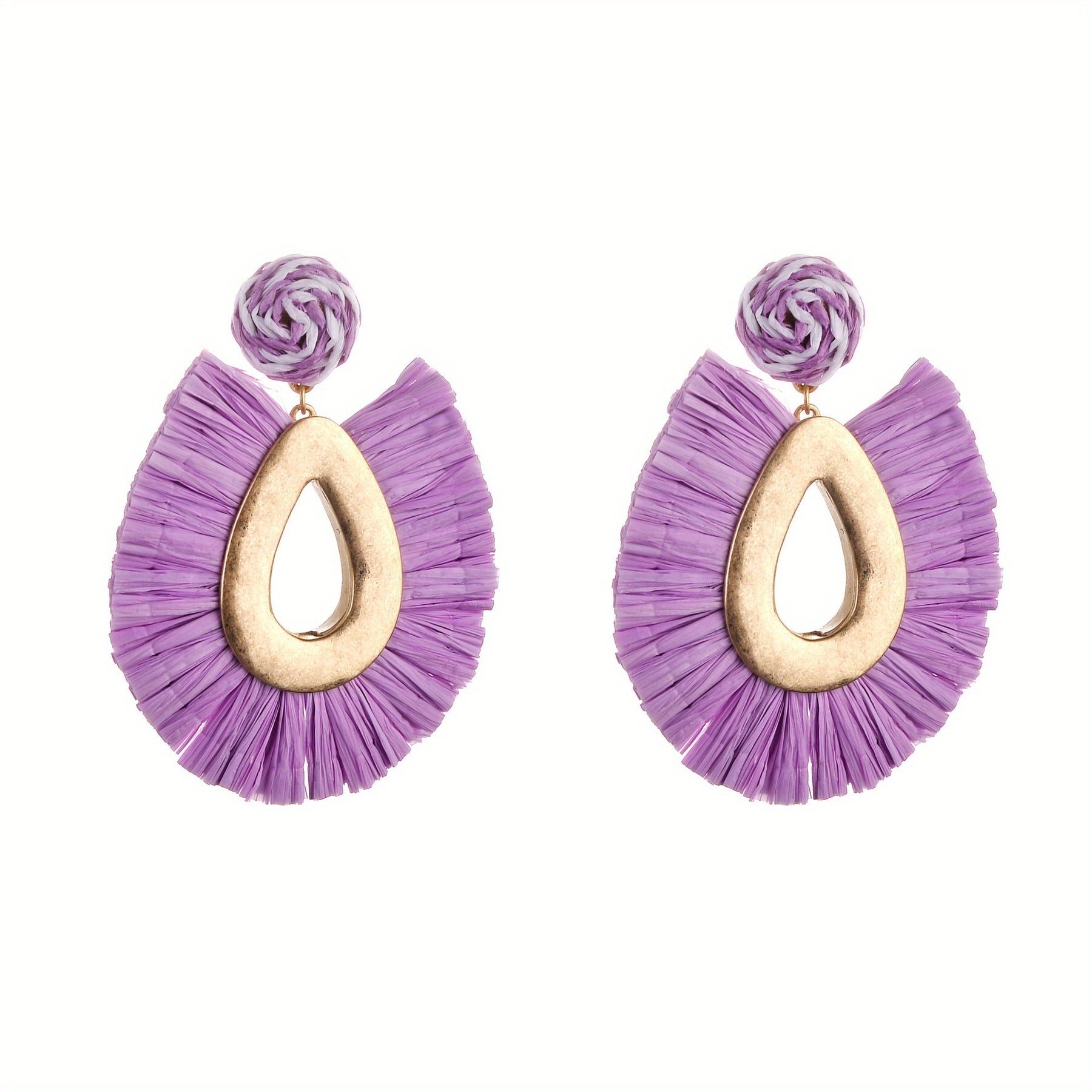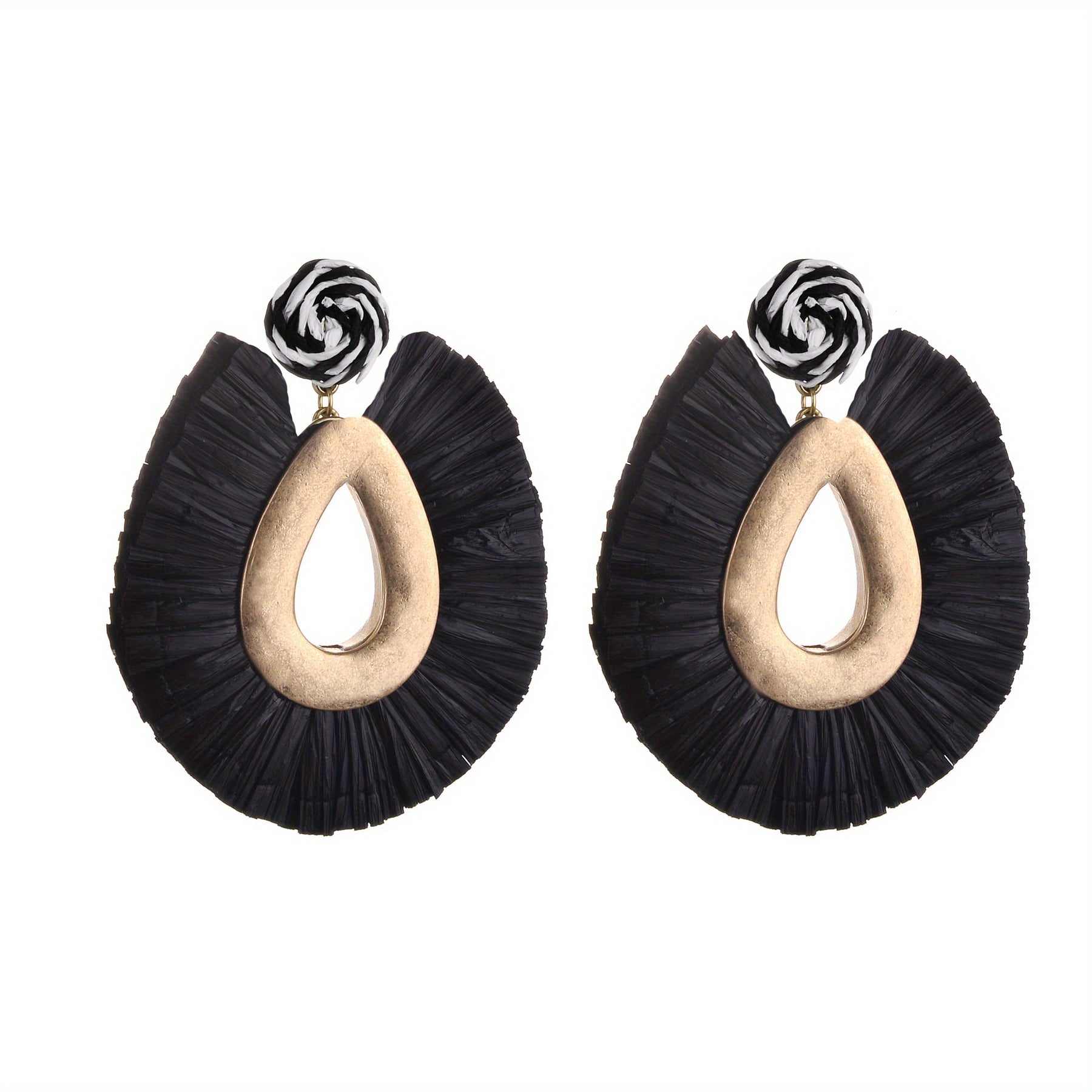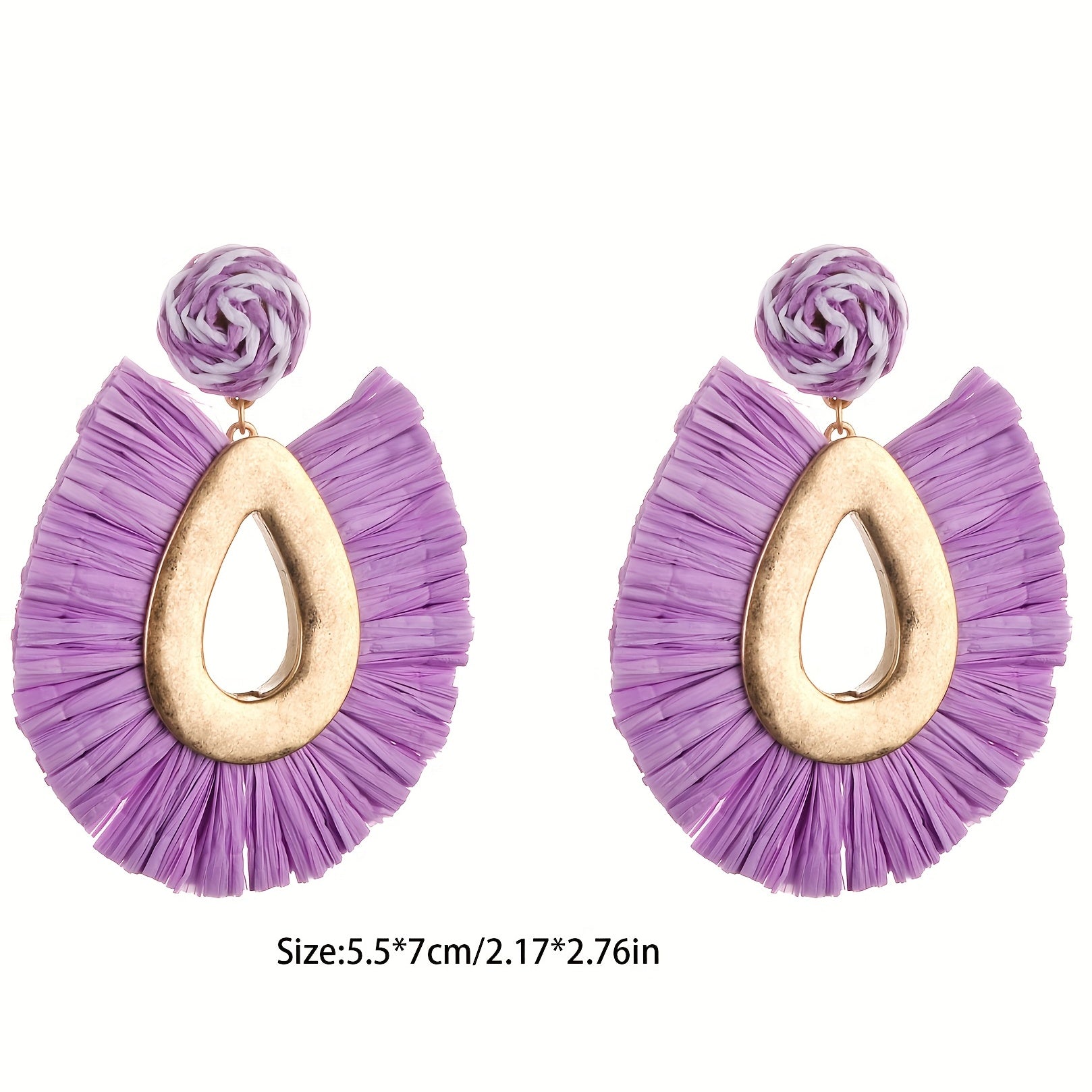 3 Pairs Raffia Grass Dangle Earrings Set Holiday Gift