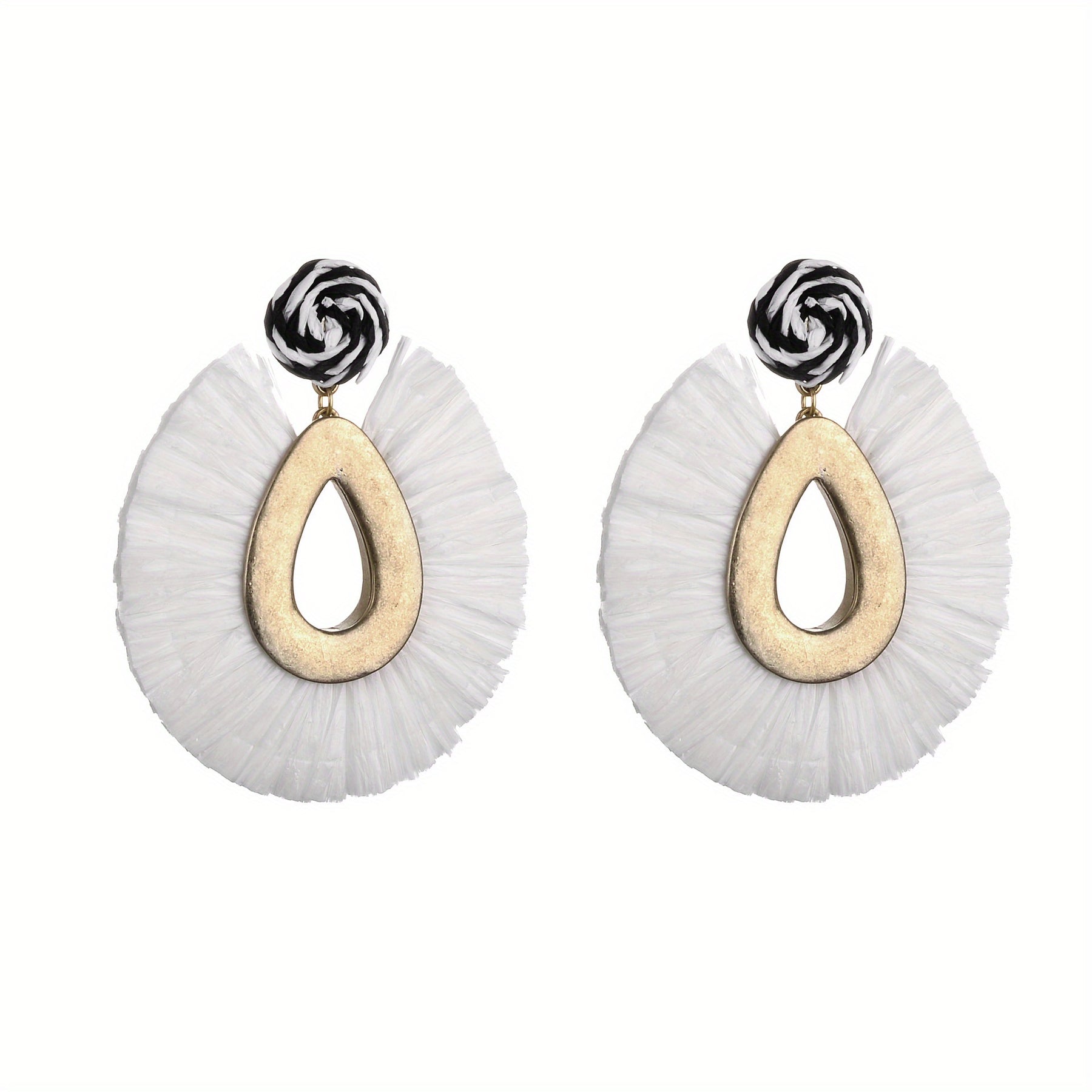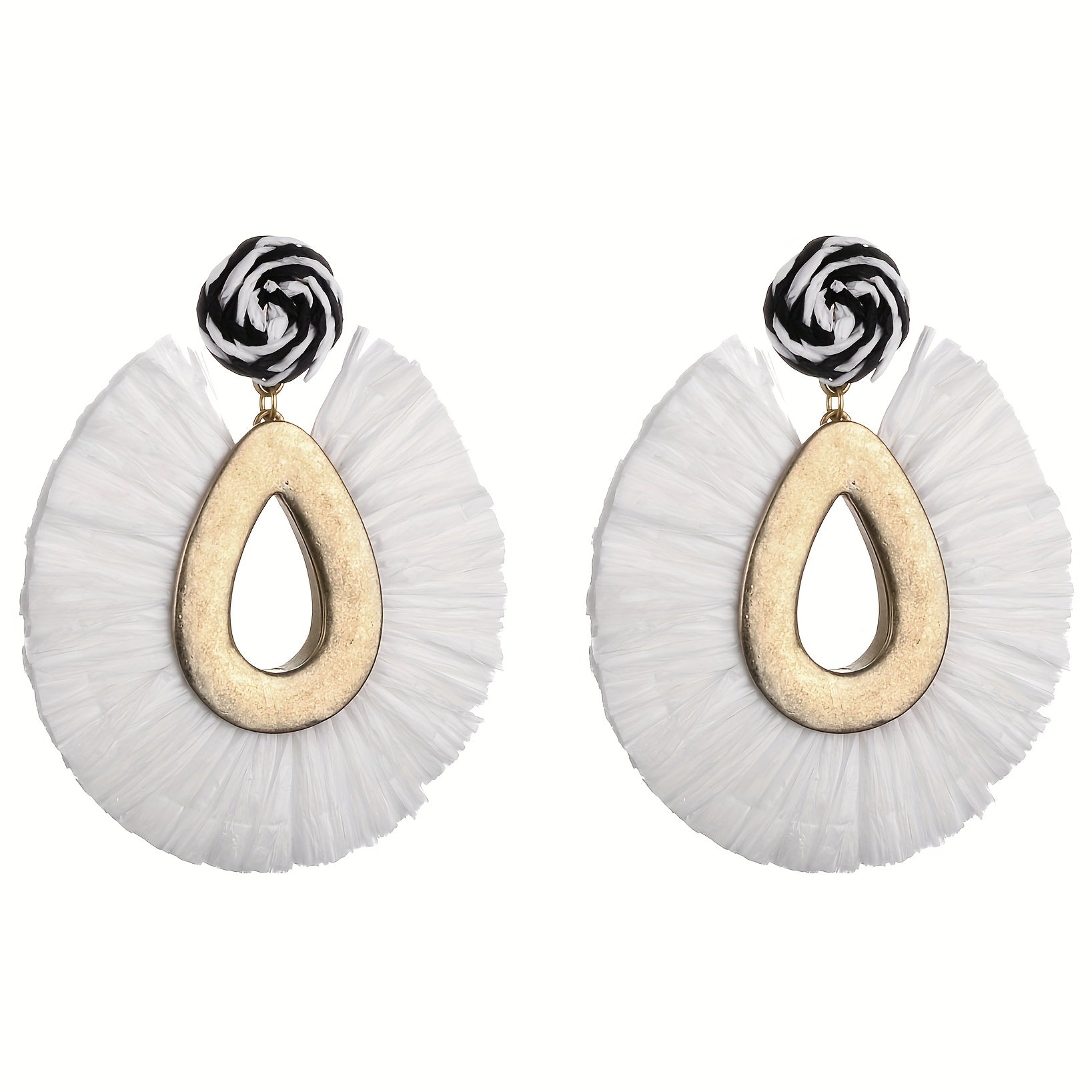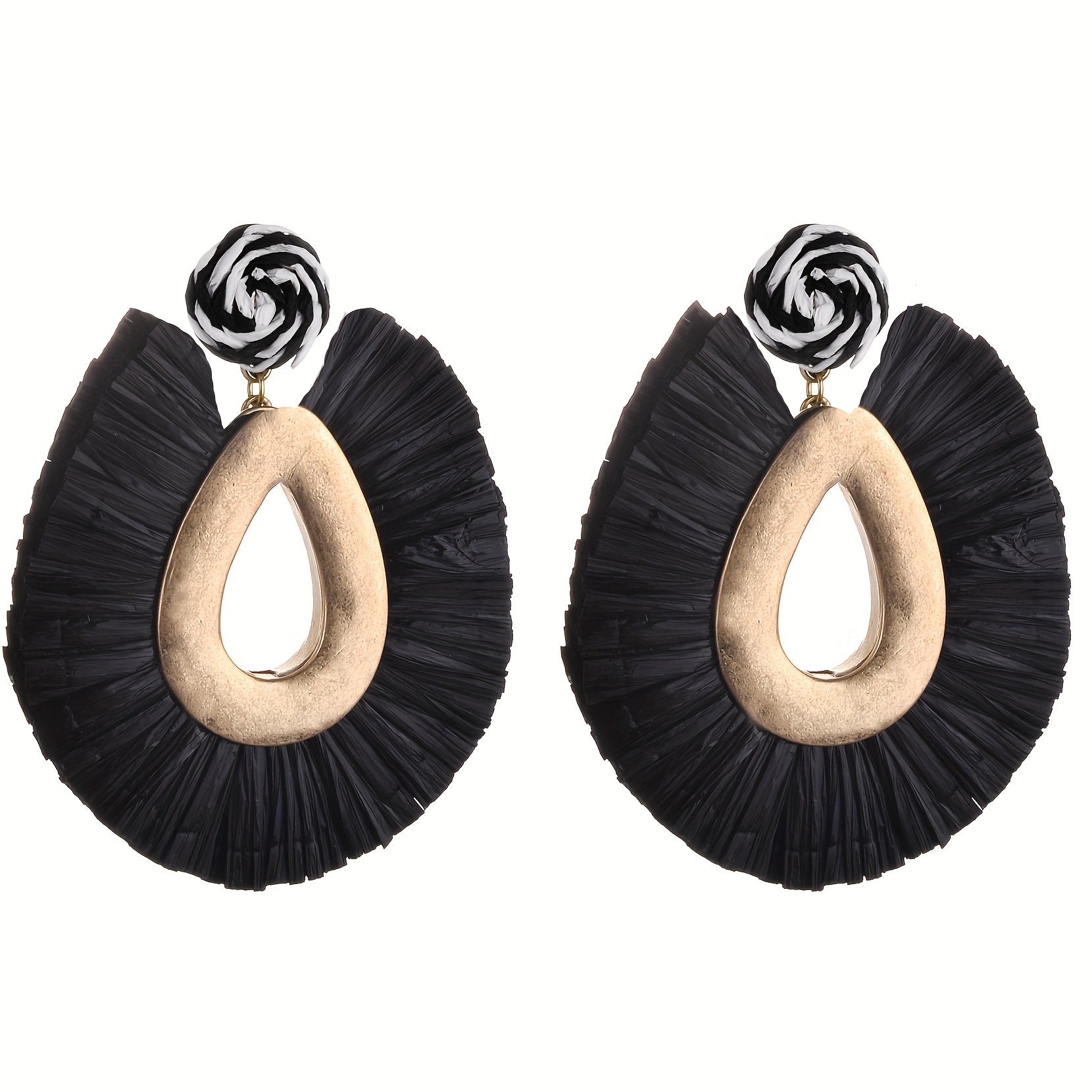 3 Pairs Raffia Grass Dangle Earrings Set Holiday Gift