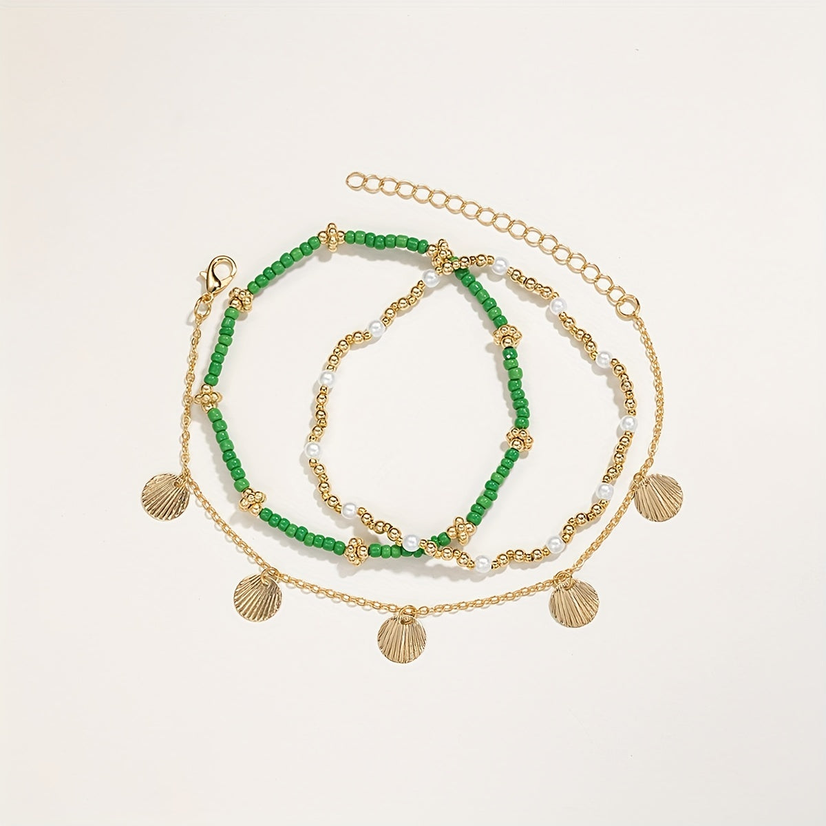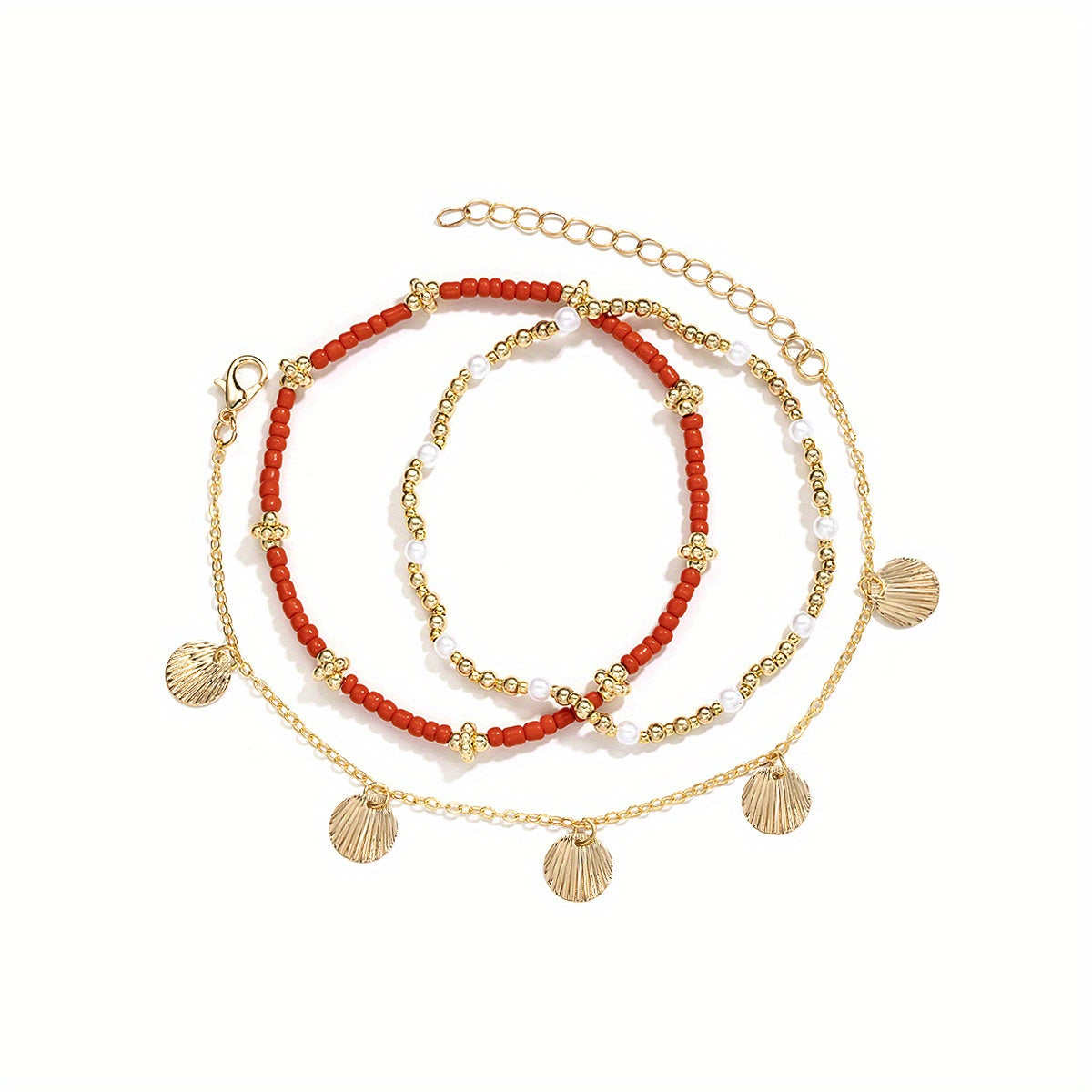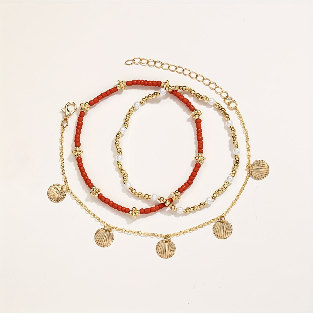 3 Pcs Round Tassel Chain Anklet Set Vintage Style Bracelet