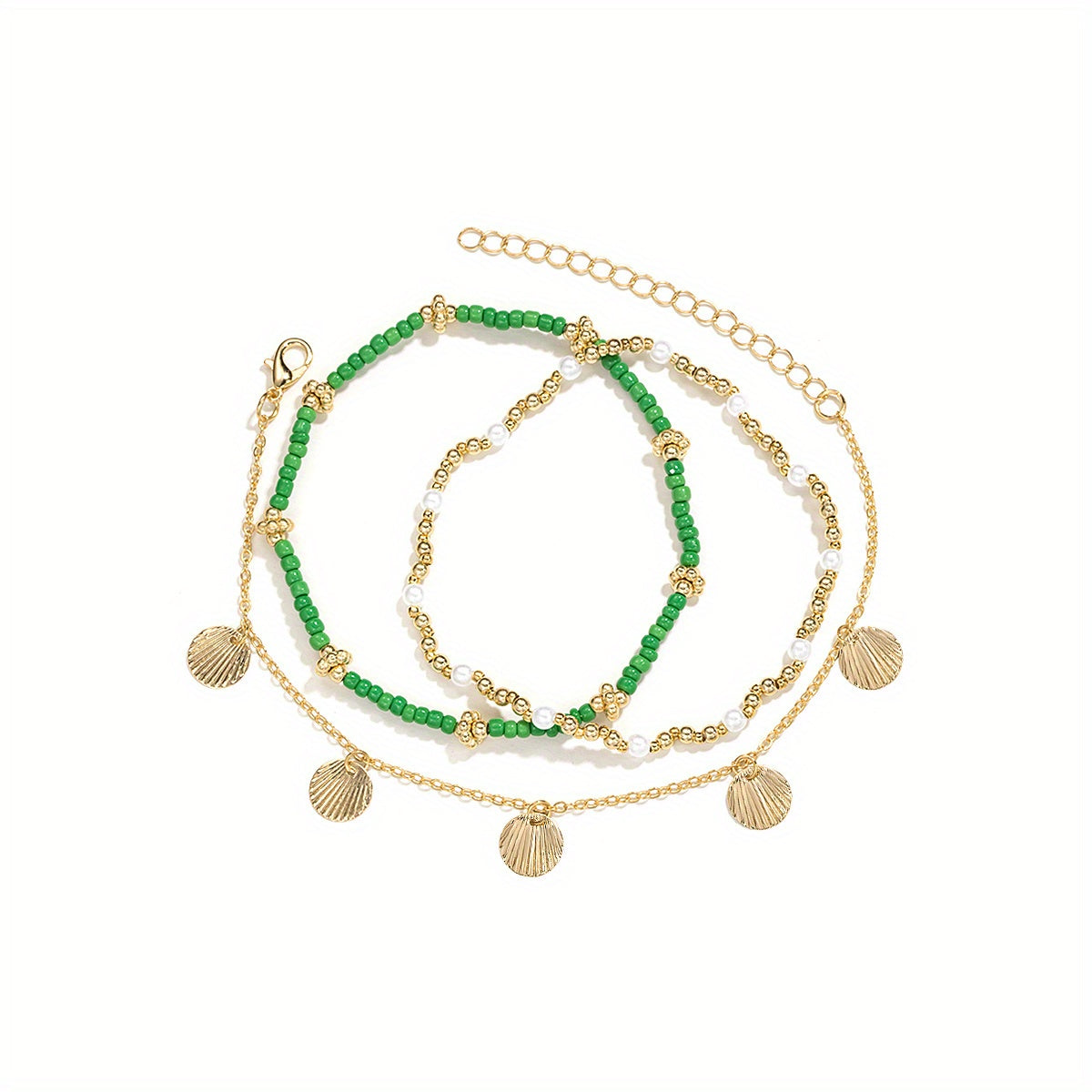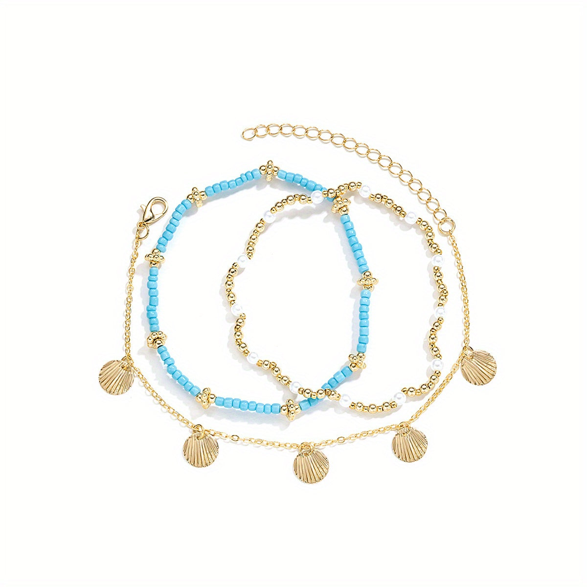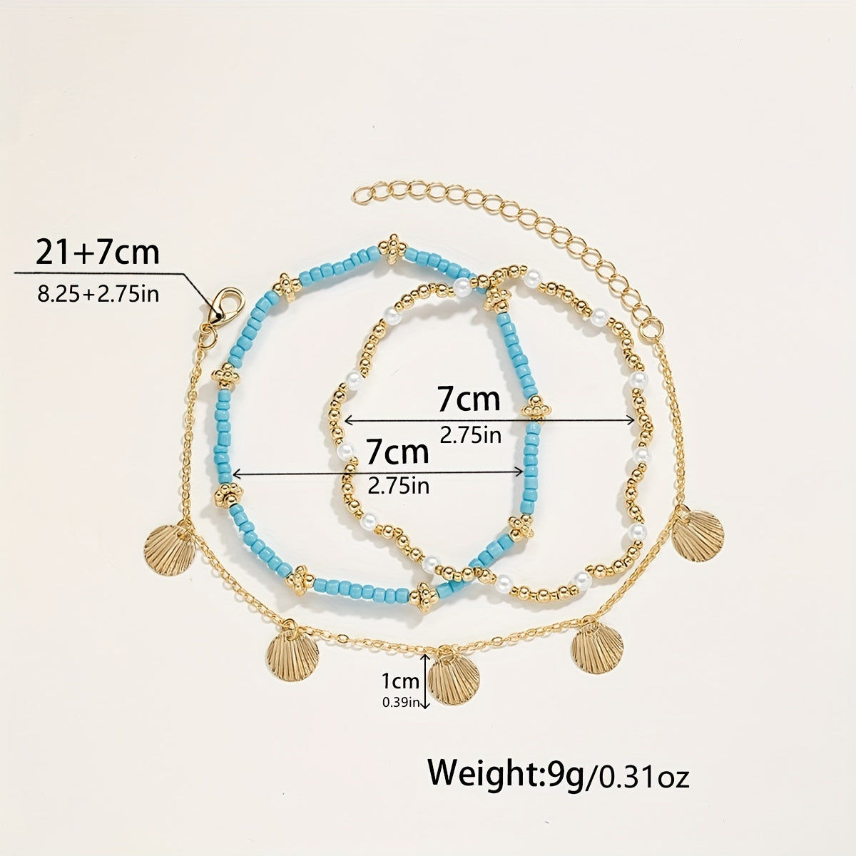 3 Pcs Round Tassel Chain Anklet Set Vintage Style Bracelet
