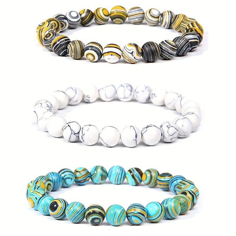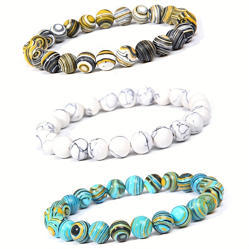 This set includes 3 elastic stone bead bracelets perfect for healing and yoga practices.