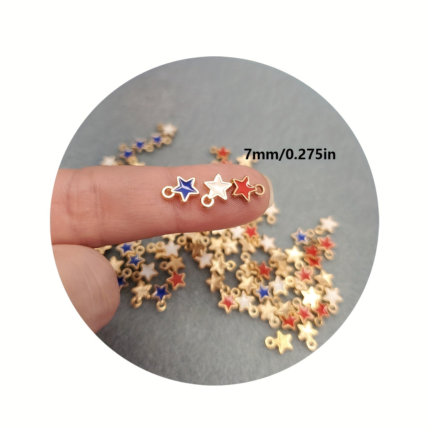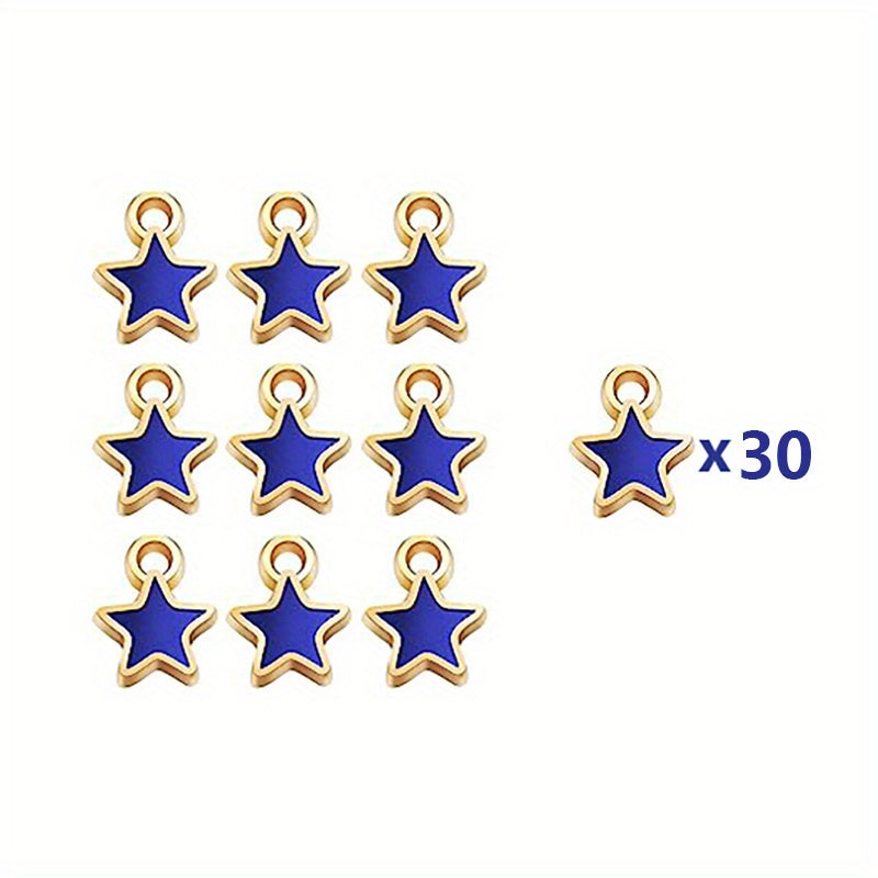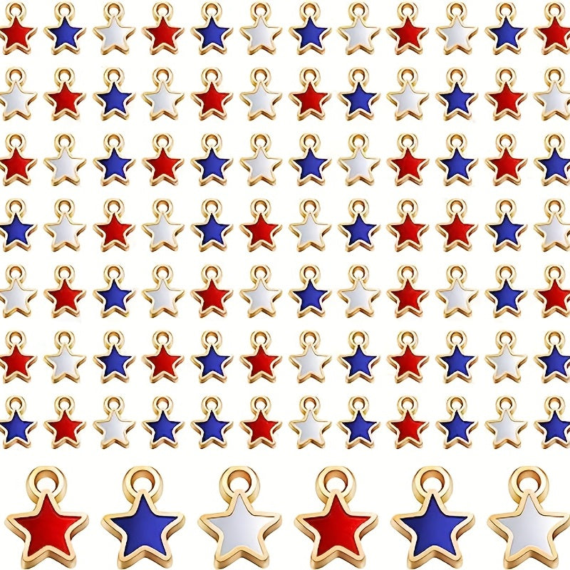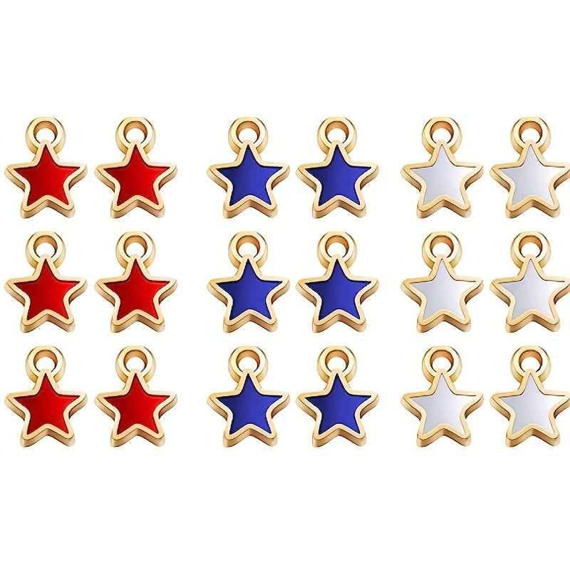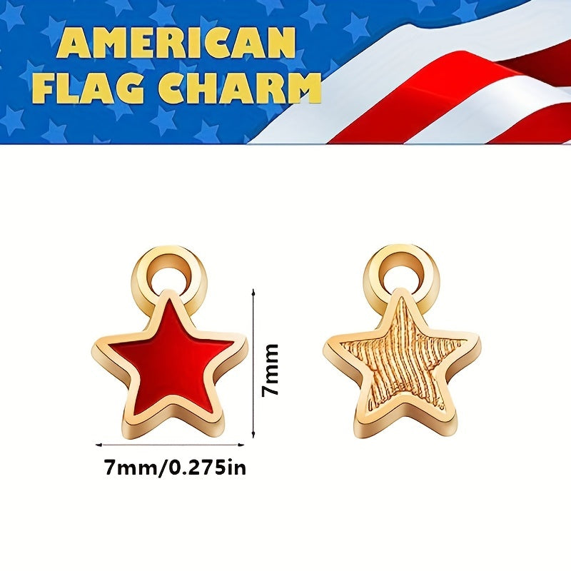 Get 30 star-shaped enamel alloy pendants in American flag pattern to create patriotic jewelry. Perfect for necklaces, bracelets, and earrings crafting.