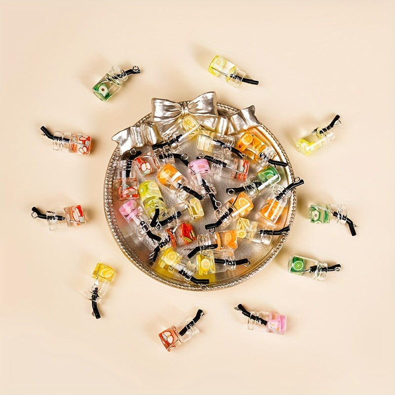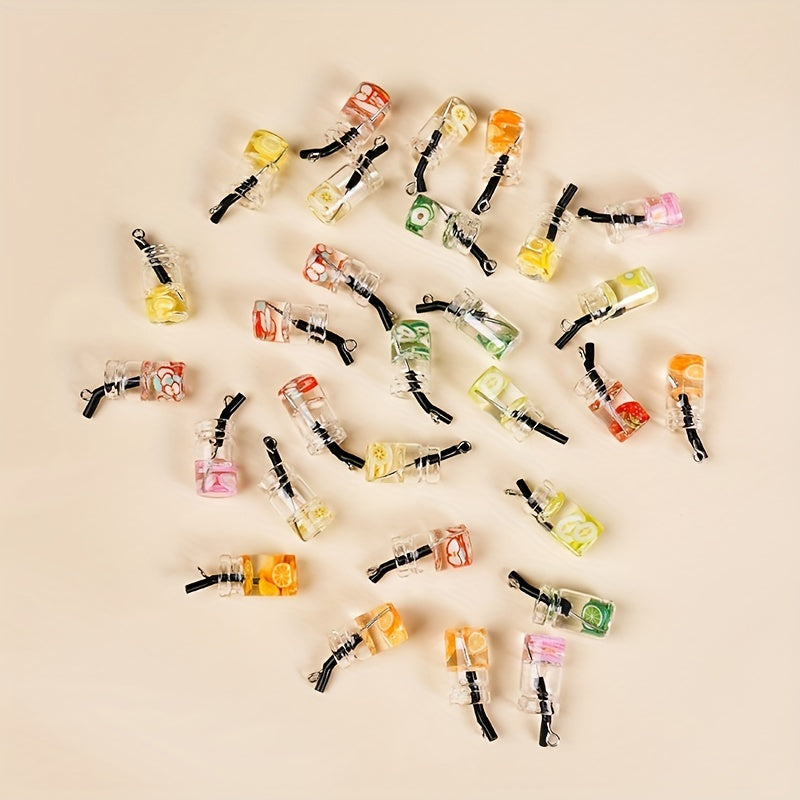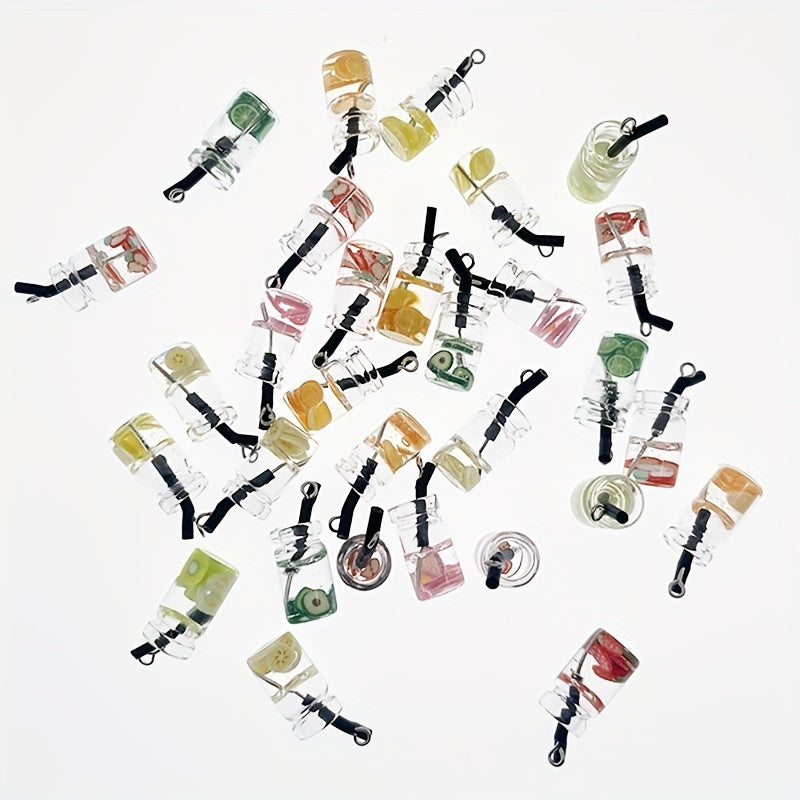 30 Pack Mixed Resin Fruit Bottle Pendant DIY Jewelry Bead Charm Accessories