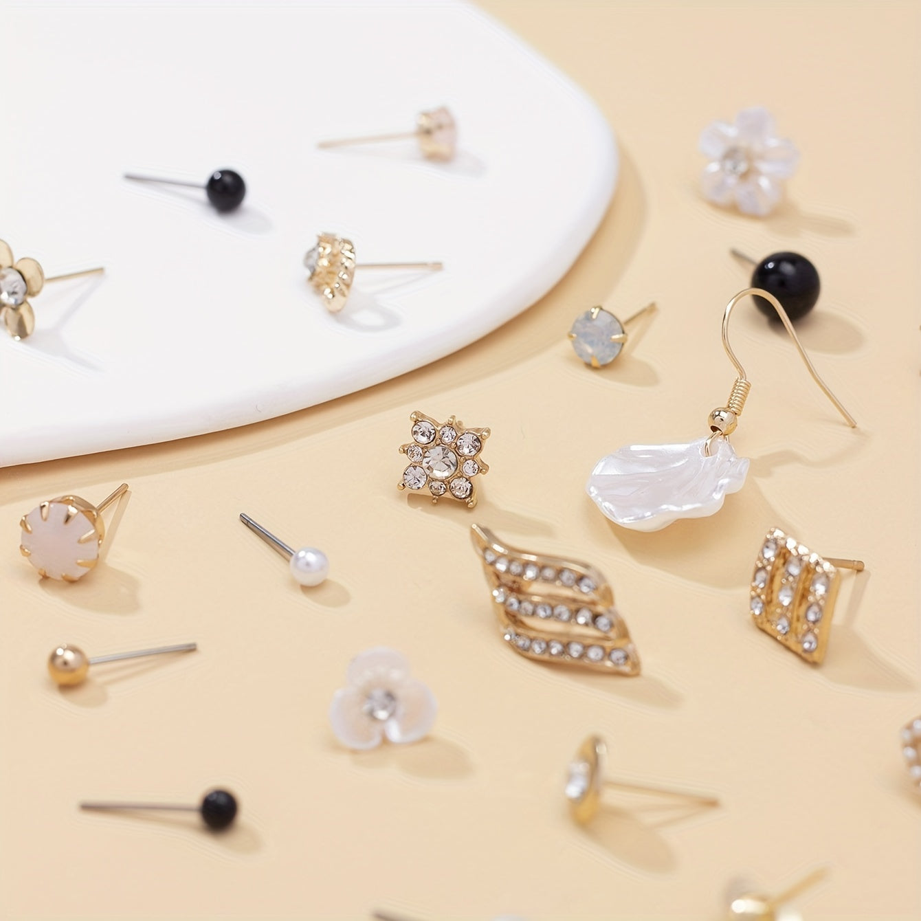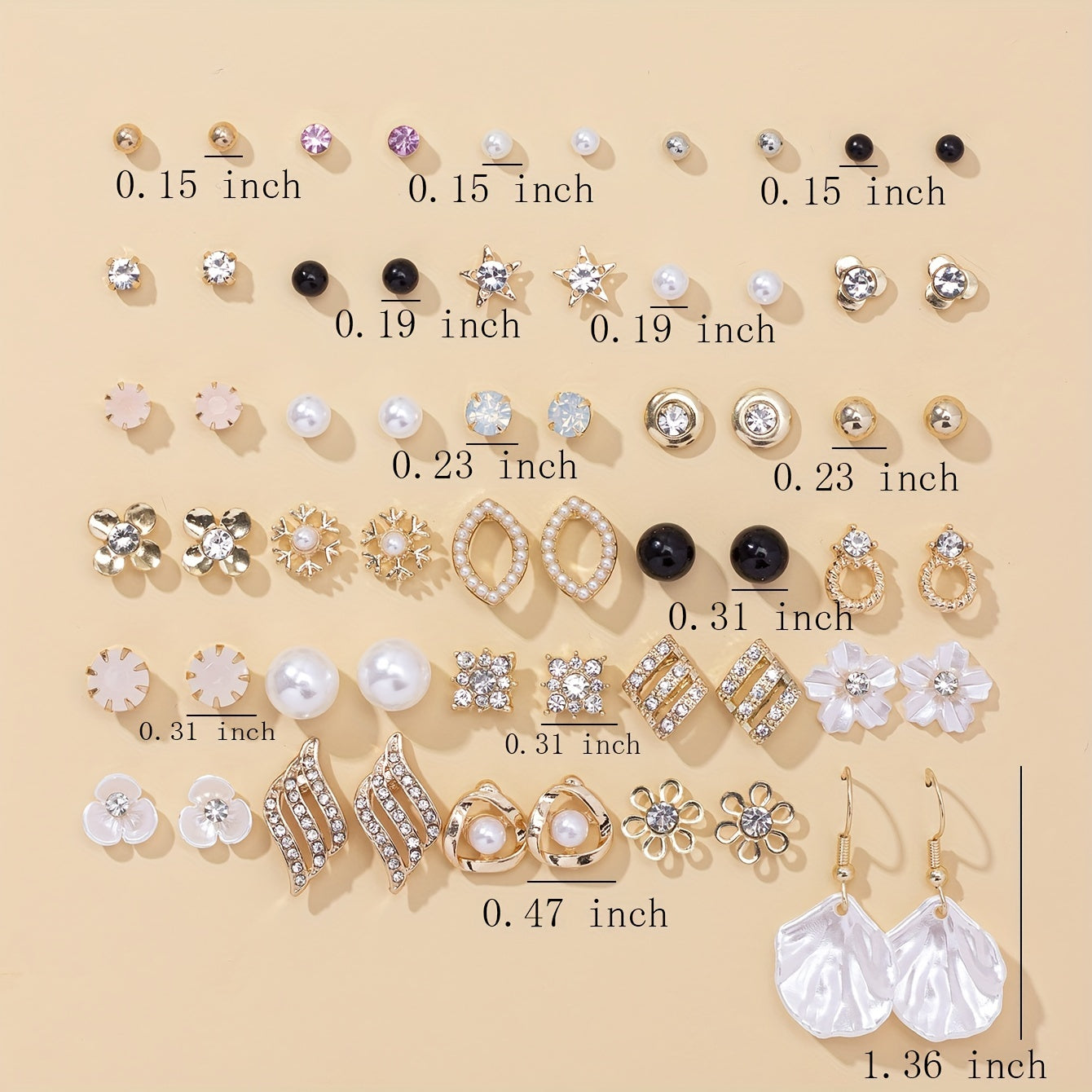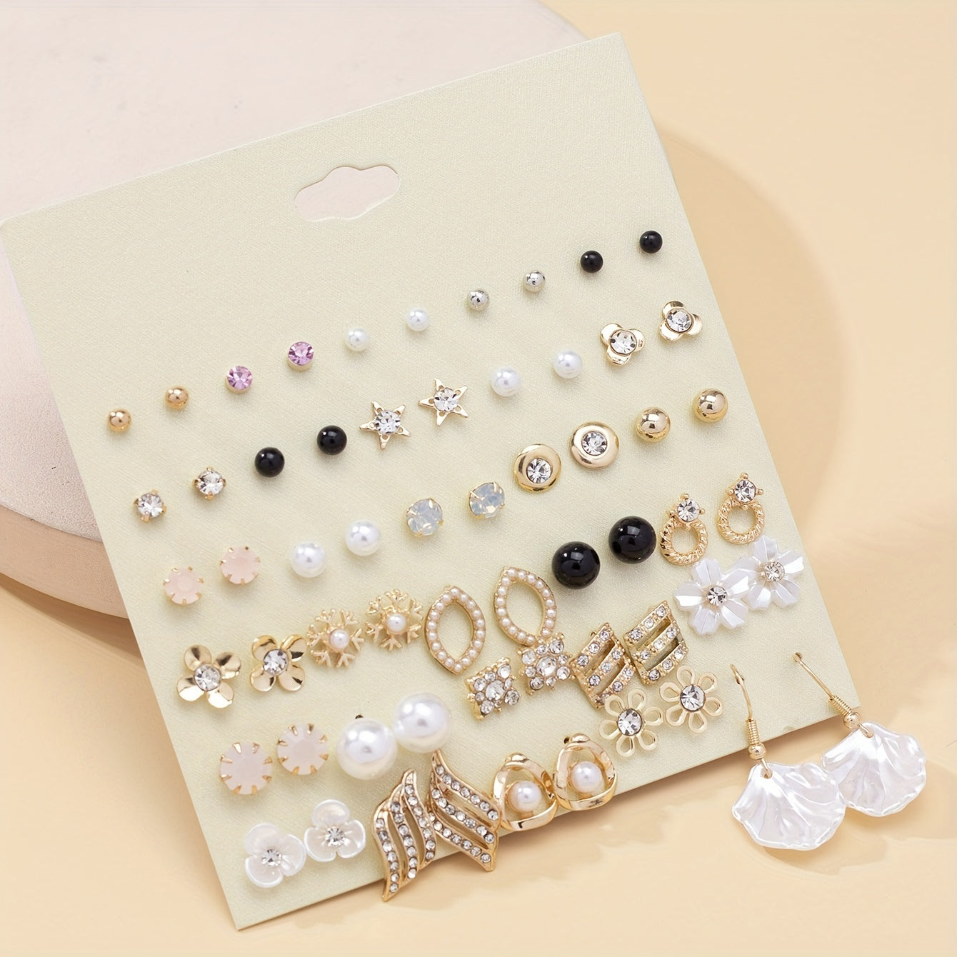 This set includes 30 pairs of stud earrings featuring shells, snowflakes, stars, small flowers, and faux pearls. Perfect for adding a touch of elegance to any outfit.