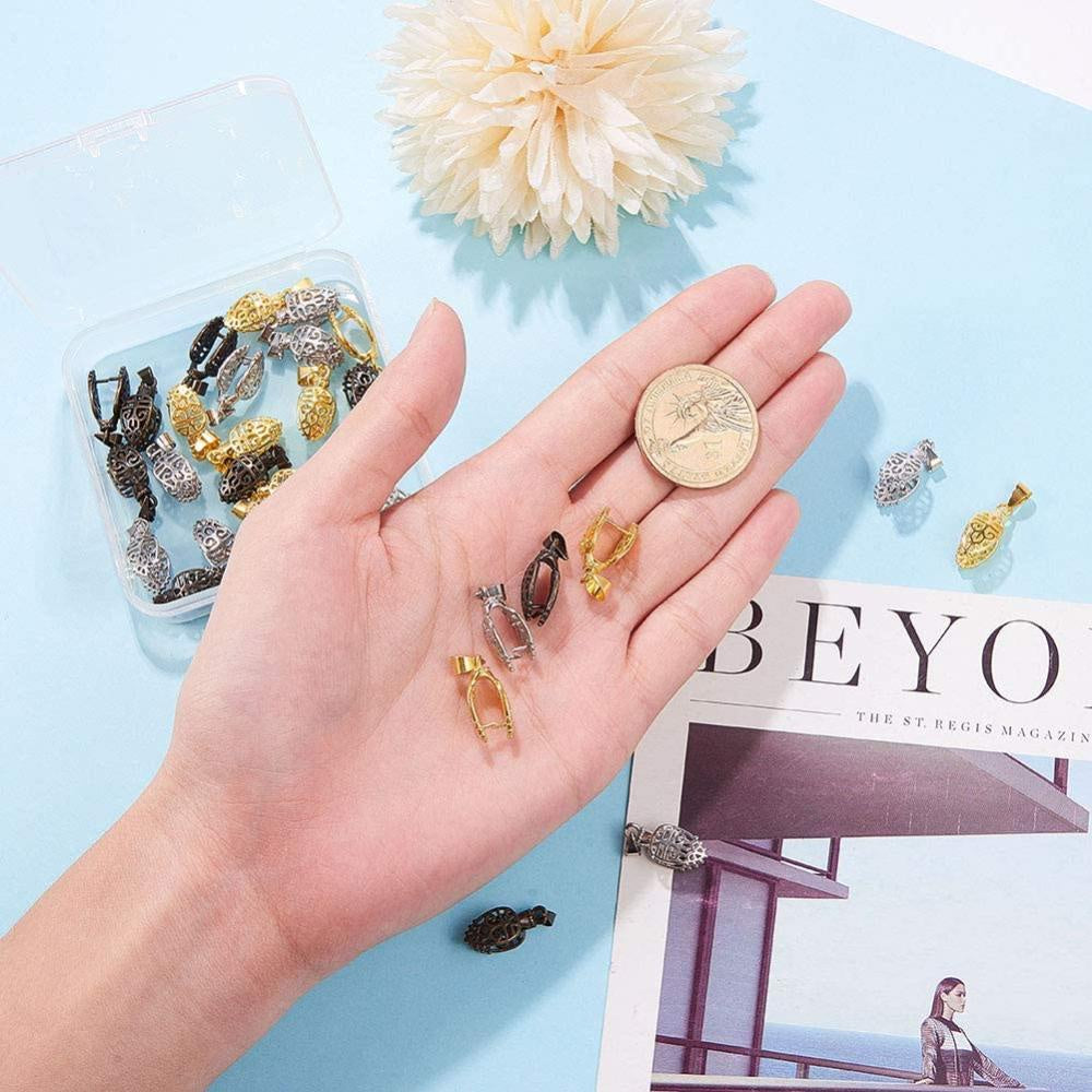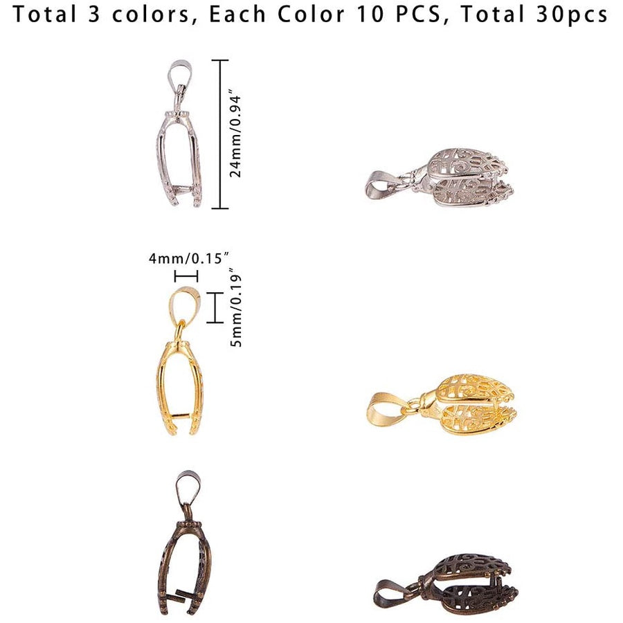 Get this set of 30 brass pinch bails in 3 colors for your DIY jewelry making. Perfect for creating pendants, necklaces, and charms. These bails are easy to use and add a stylish touch to your handmade creations.
