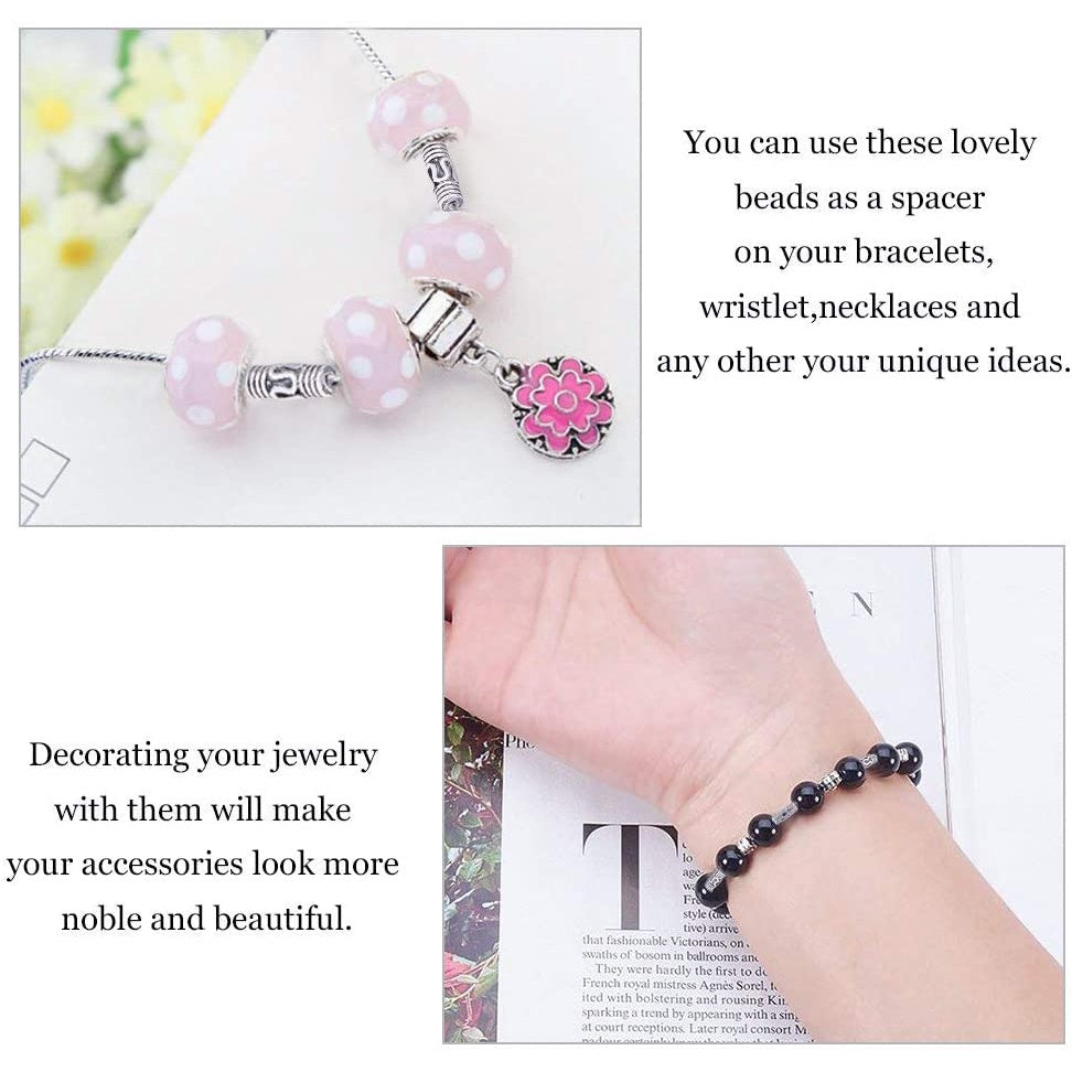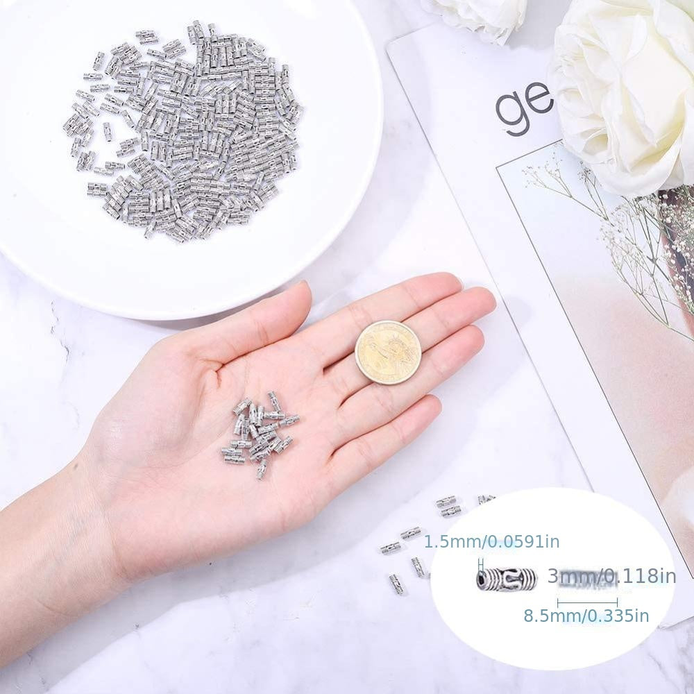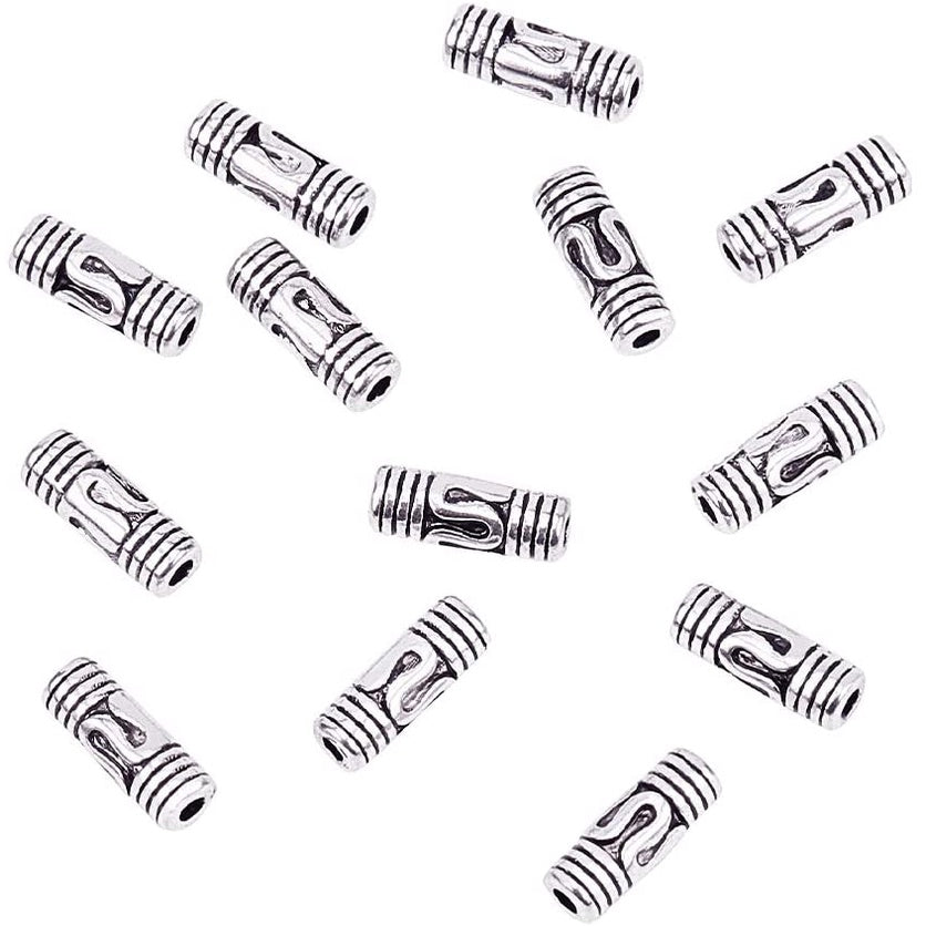 Get this pack of 300 column spacer beads to enhance your DIY bracelet, necklace, or other jewelry creations. Made of alloy in an antique silver finish. Each bead measures 8.5x3mm.