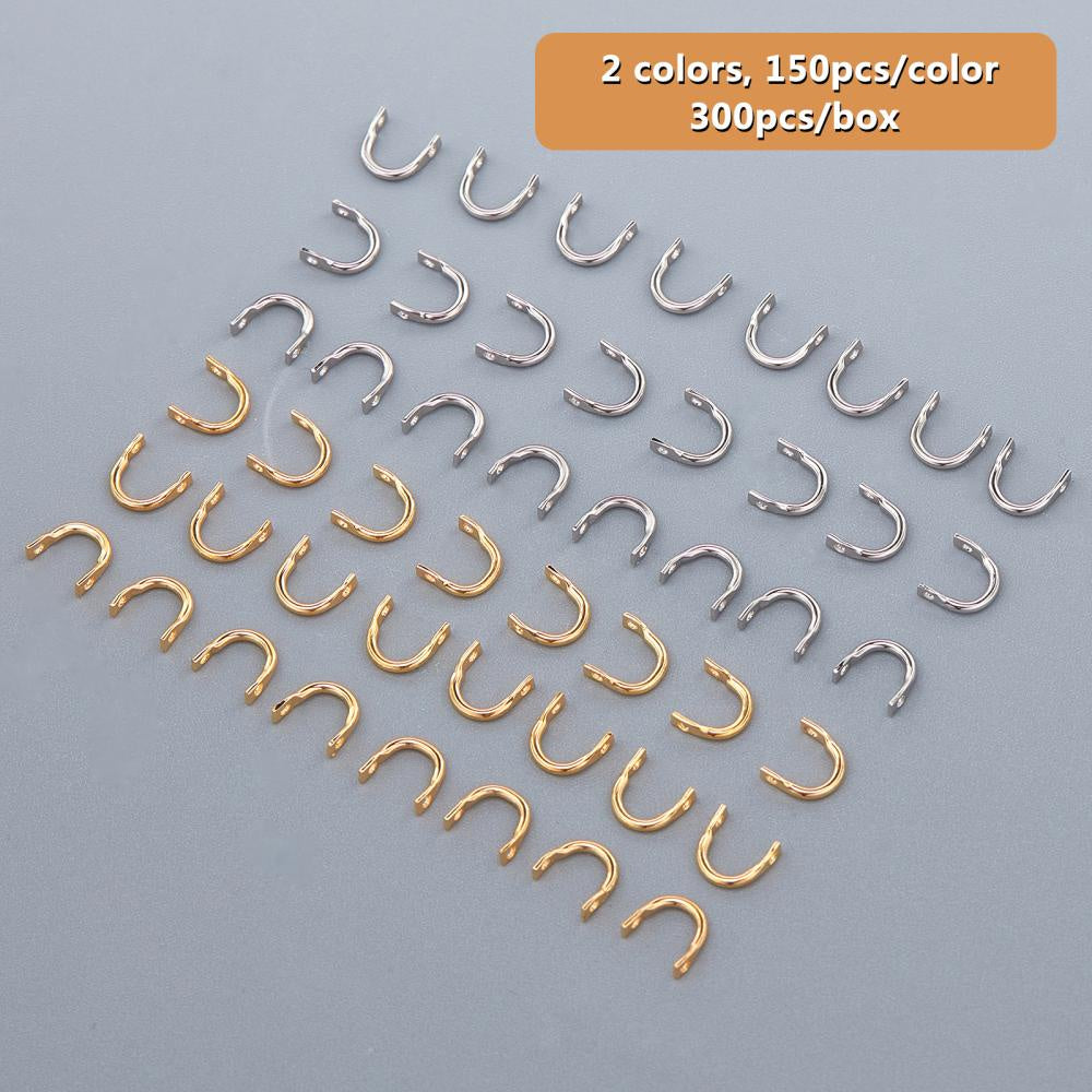 This set includes 300 pieces of silver and golden folded U-shaped brass links for DIY fishing lures. Each link measures 5.5x4x2mm, making them ideal for creating unique spinners and blades.