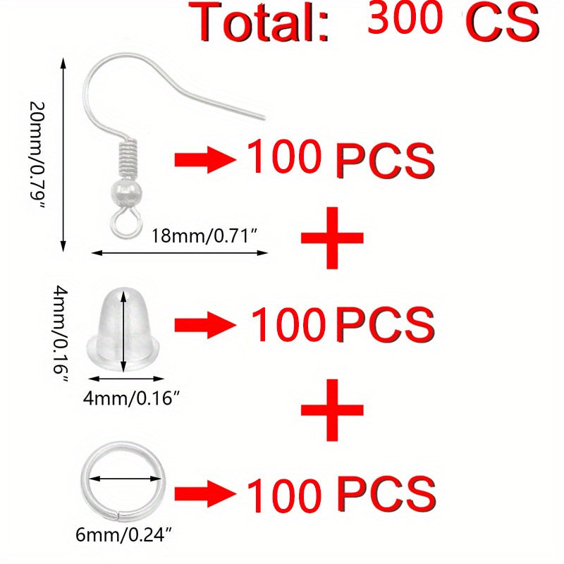 300Pcs Silver Earring Hooks Kit DIY Jewelry Making