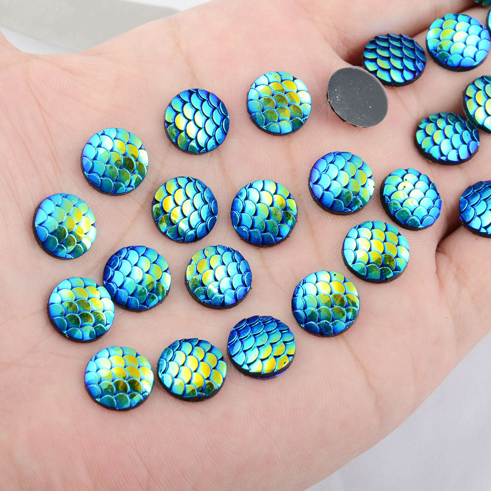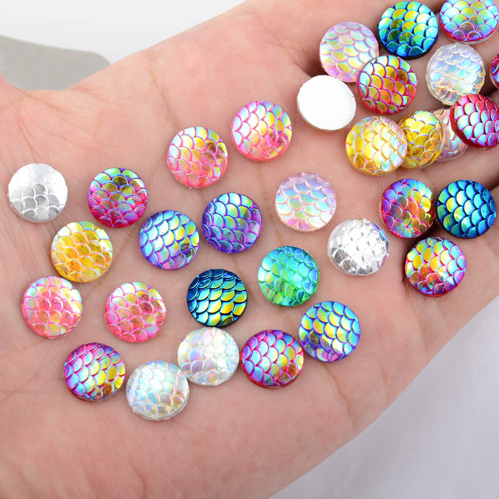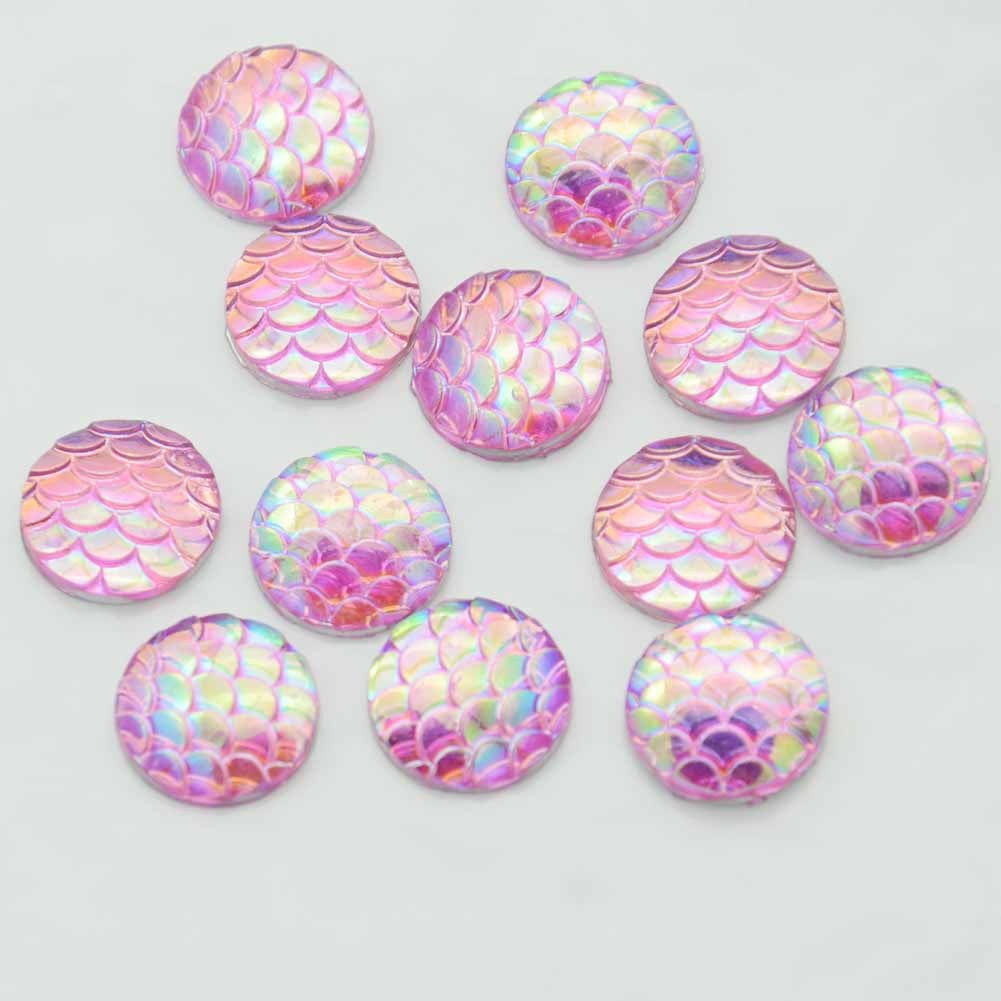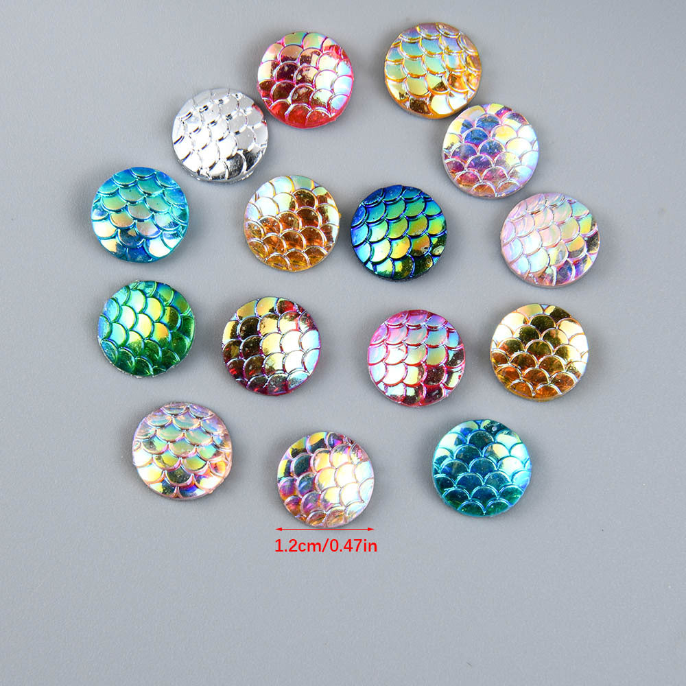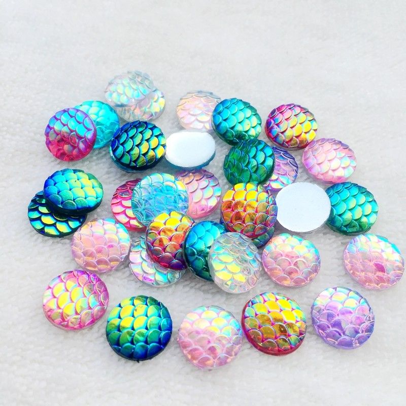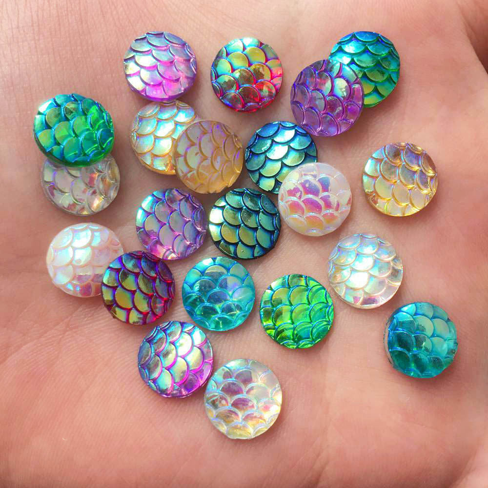 Add a touch of sparkle to your DIY jewelry projects with this set of 30 iridescent mermaid round glitter appliques. These resin appliques are perfect for creating unique accessories.