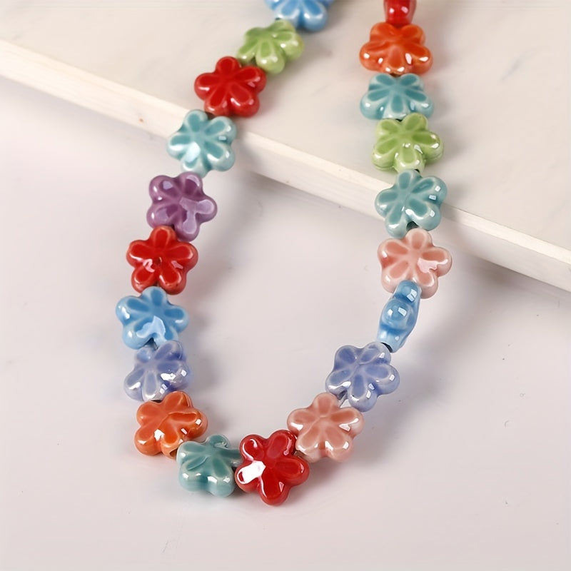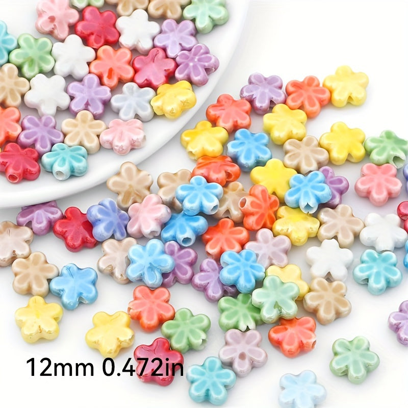 30pcs 12mm Colored Ceramic Flower Beads for DIY Jewelry Making