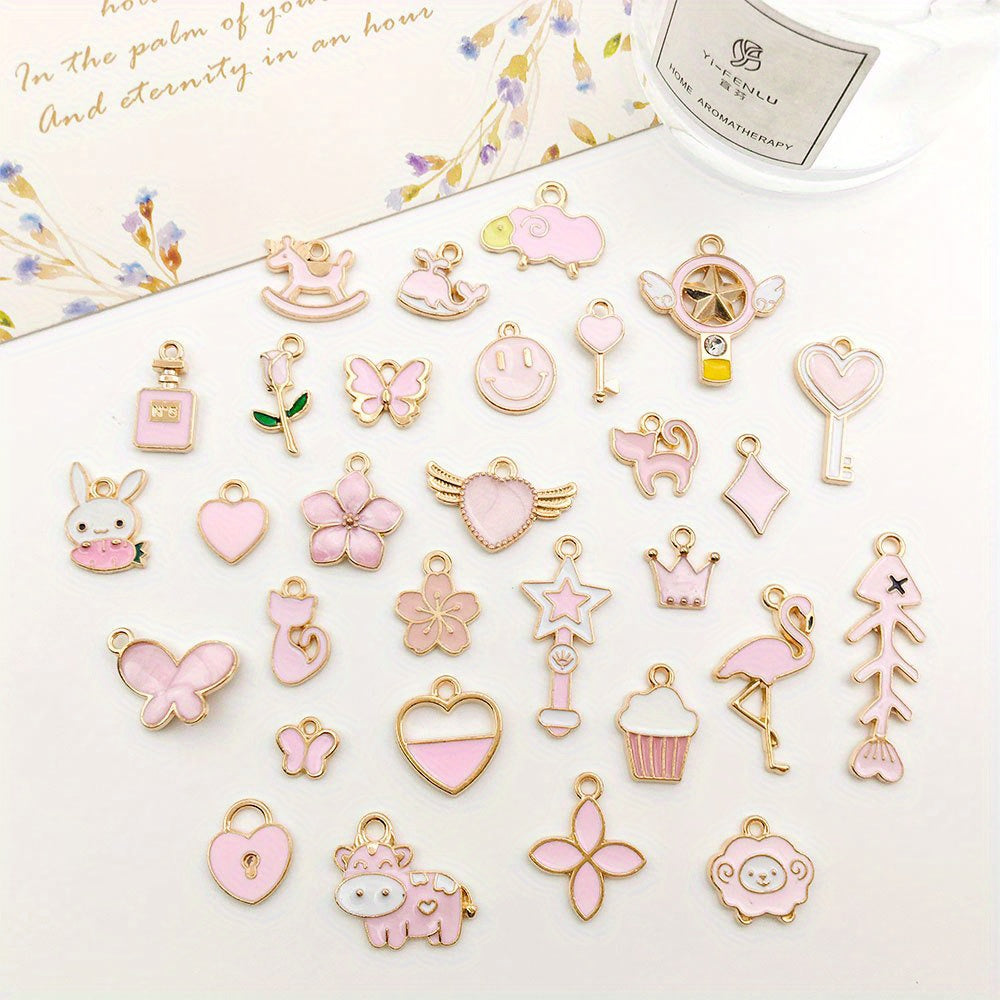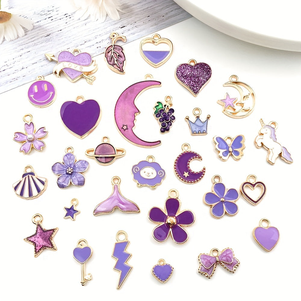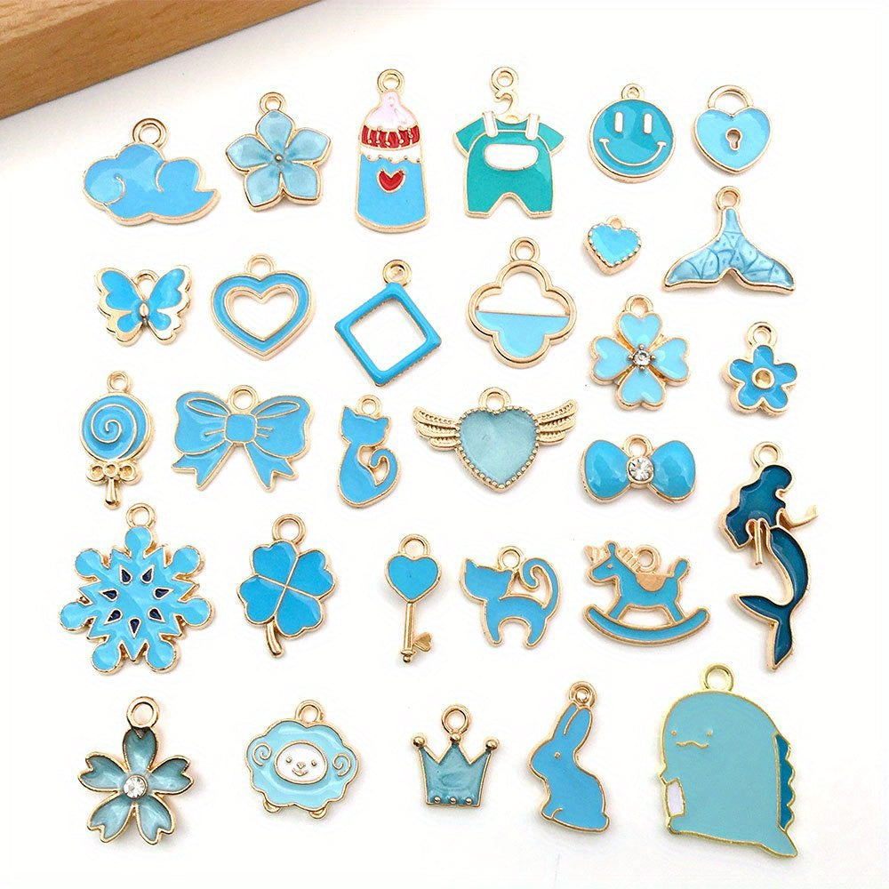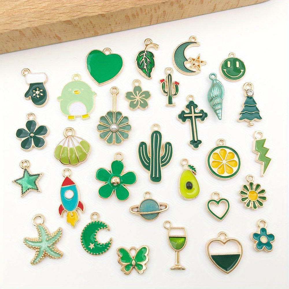 Get creative with this set of 30 assorted shaped colorful enamel alloy pendants. Perfect for making earrings, bracelets, necklaces, and other accessories.