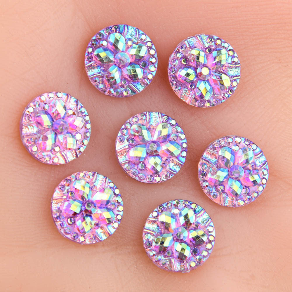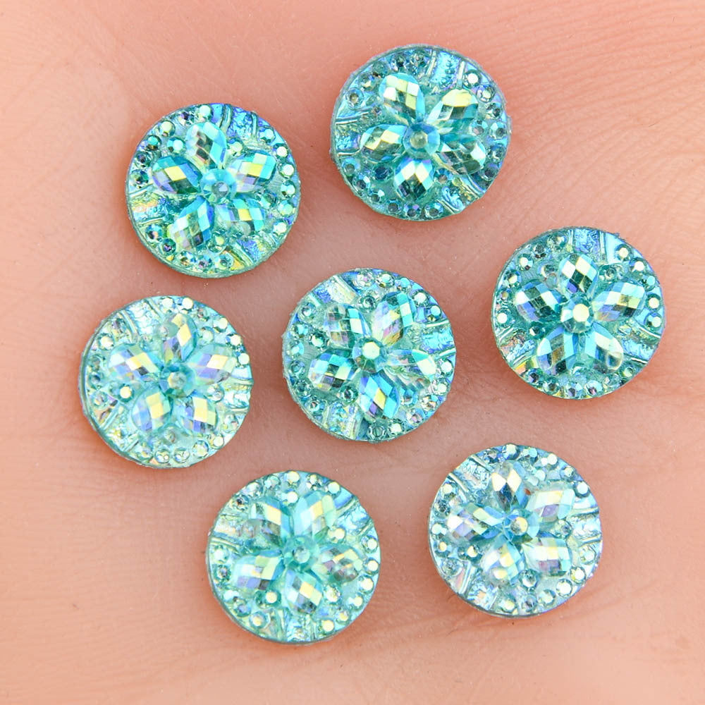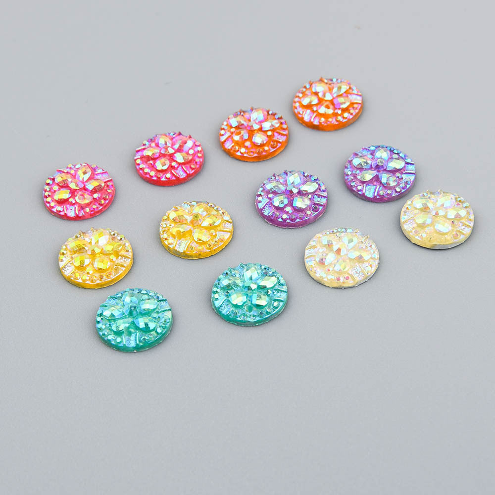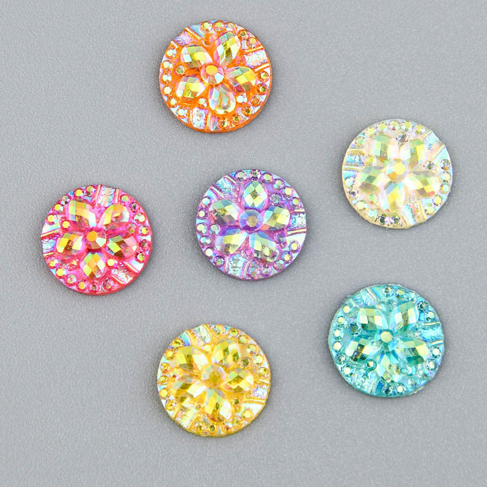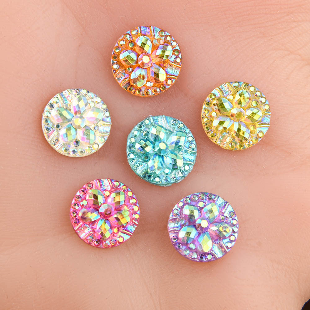 Add a touch of colorful elegance to your jewelry creations with these 1.0 inch round resin charms featuring beautiful flower patterns in assorted AB colors. Perfect for bracelets, earrings, and other accessories.
